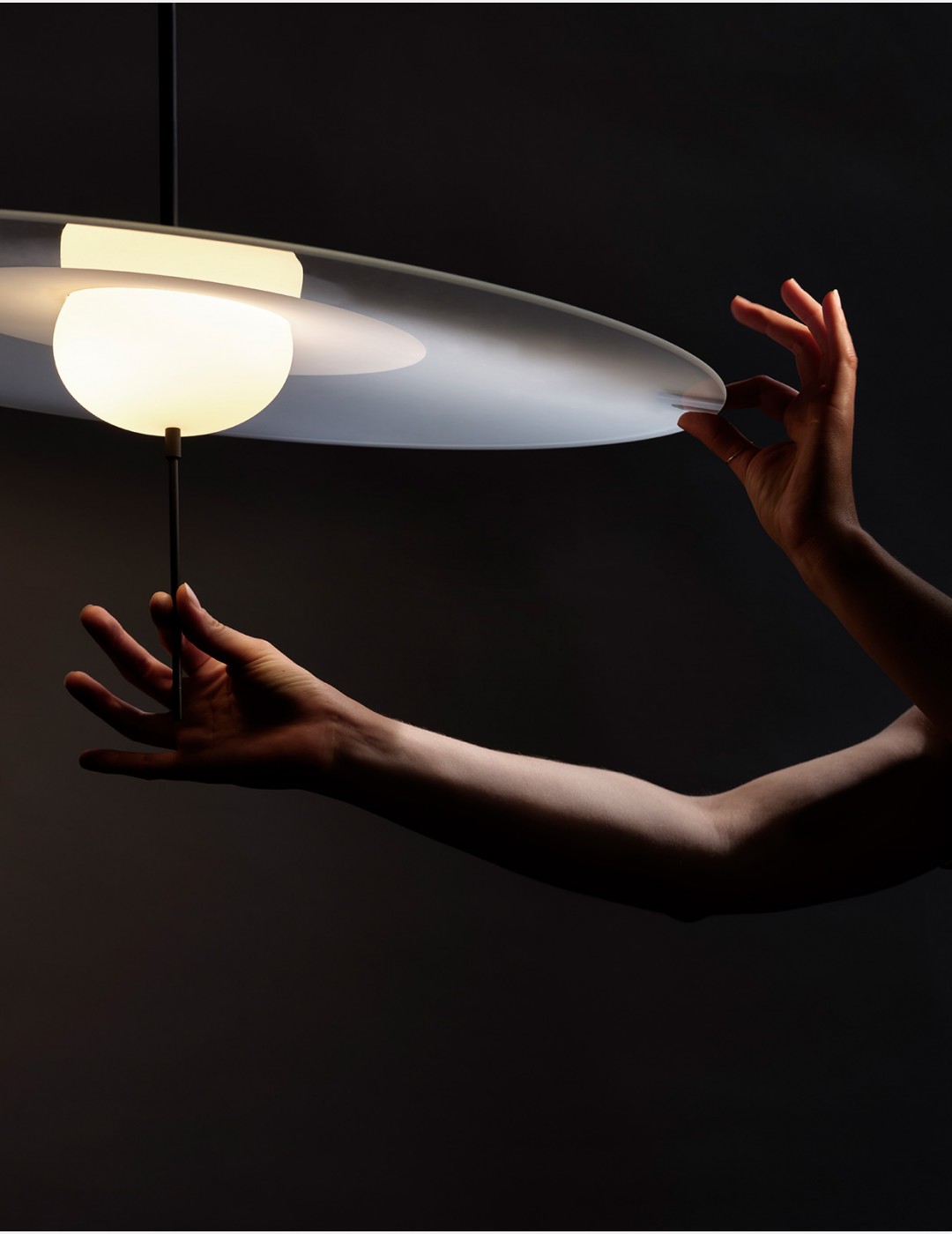 Mono gebruikt een spannend en elegant ontwerp dat zeker elke kamer waarin hij mag hangen zal kenmerken. Aan de onderkant van de lichtgevende planeet hangt een stokje dat gebruikt kan worden als aan-uitknop en als dimmer. De riem die om de lamp hangt kan worden verplaatst, waardoor u licht- en schaduwspel in uw huis kunt creëren.