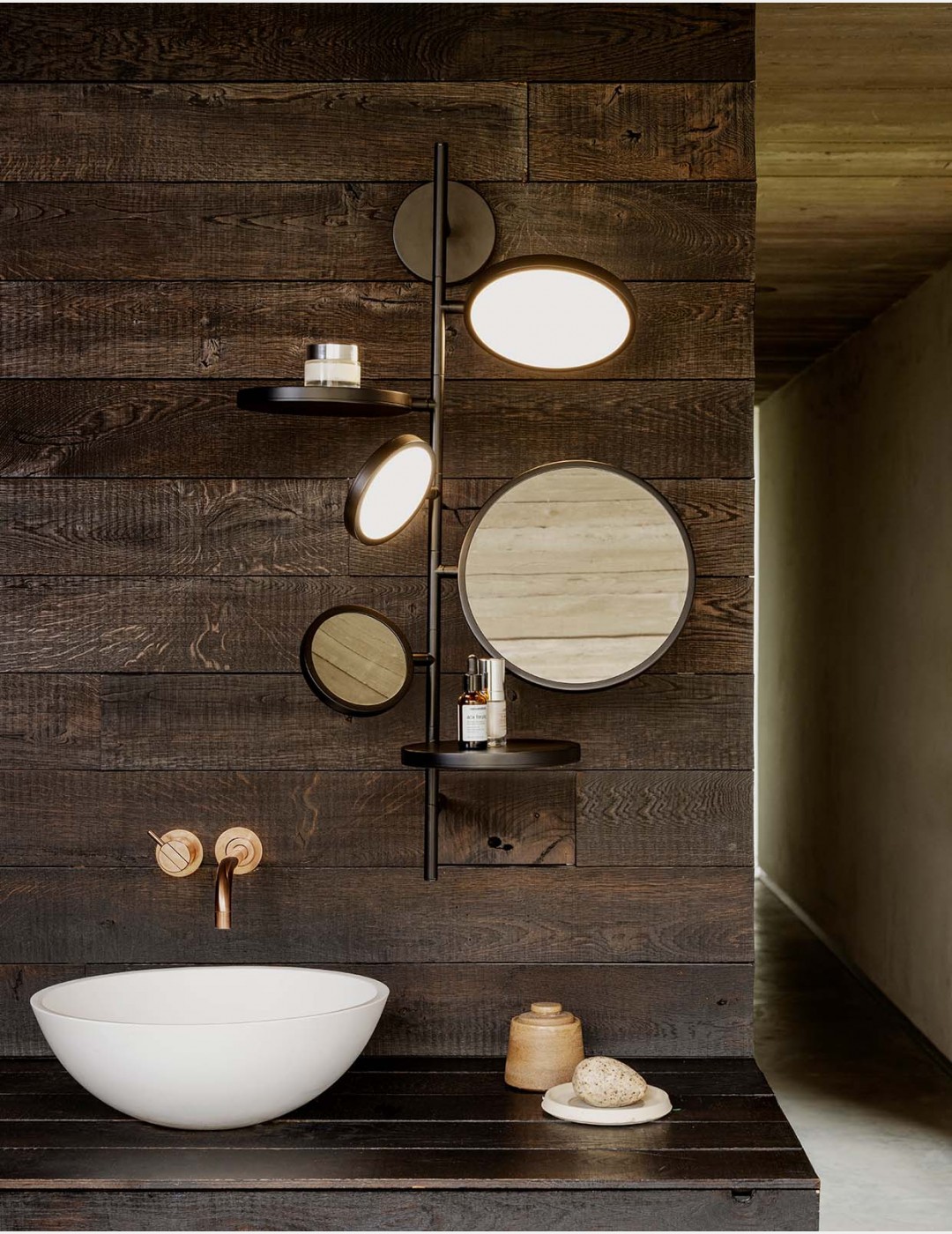 Het meubel bestaat uit twee schijven met dimbare LED-verlichting, twee spiegels – waarvan één met 3x versterking – en twee slimme tafels waarop je je make-up, baardtrimmer, zeep of lotion kunt plaatsen.