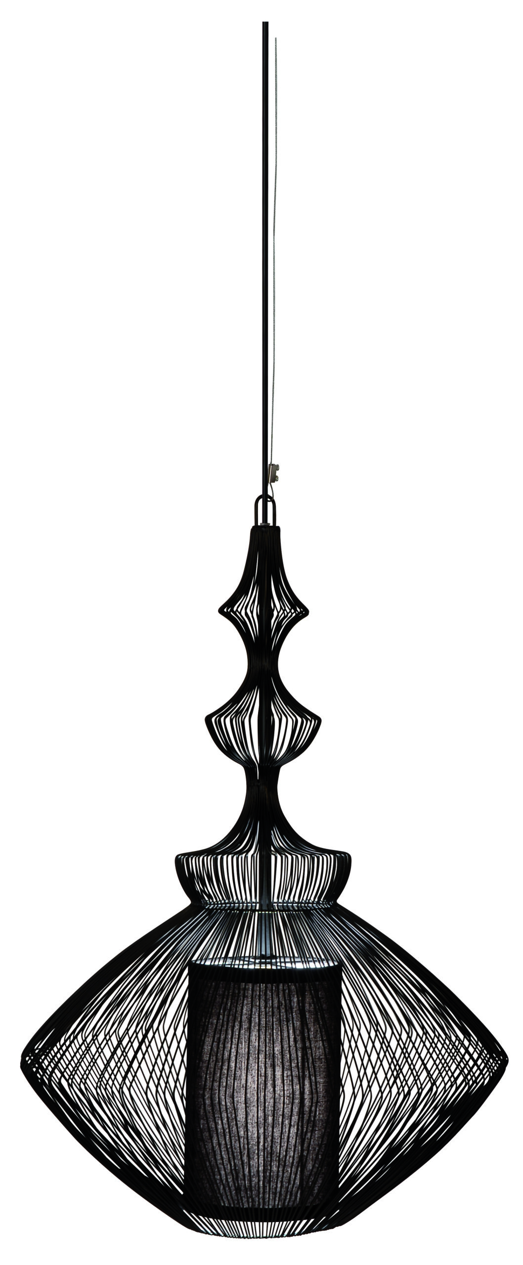 Opium Hanglamp Zwart is vorstelijk en sensueel tegelijk. De vele decoratieve details komen tot hun recht wanneer de lamp aan is en het licht van de interne cilindrische Scherm de hele structuur vult.
