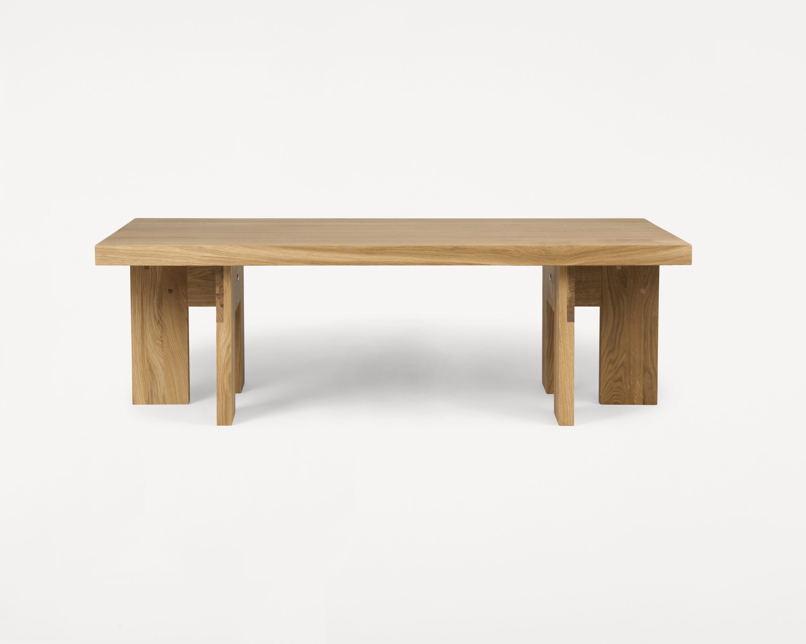 Eettafel in een boerderij die een landelijke esthetiek uitstraalt, gecombineerd met moderne Scandinavische trends. Het rustieke eikenhout met knoesten geeft karakter aan het verder eenvoudige silhouet, dat is opgebouwd uit een dubbelzijdig tafelblad; een gepolijst en ongepolijst oppervlak, evenals een frame dat is gemaakt in de traditionele schragenconstructie die het tafelblad ondersteunt. De tafel is verkrijgbaar in meerdere uitvoeringen en kleuren.