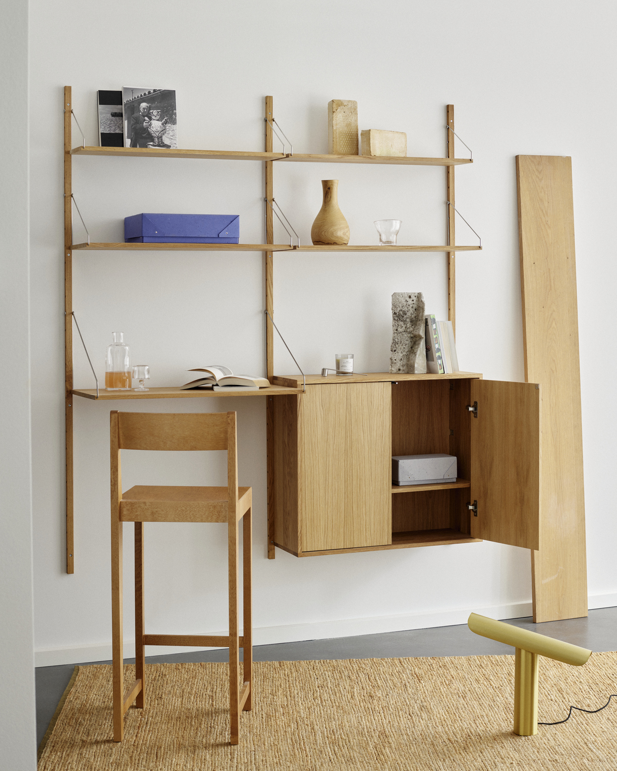 De Shelf Library Collection is een FRAMA-klassieker die de essentie van Frama’s designuniversum omarmt met een focus op Scandinavisch minimalisme in organische materialen van de hoogste kwaliteit. Ontwerper Kim Richardt heeft een reeks universele en multifunctionele elementen gecreëerd in naturel, wit geolied, donker geolied eikenhout en roestvrij staal. De schappen worden eenvoudig aan de wandhouder bevestigd en kunnen naar behoefte worden herschikt voor een universeel en tijdloos ontwerp, waarbij de tafel de schappen ideaal maakt voor op kantoor.
