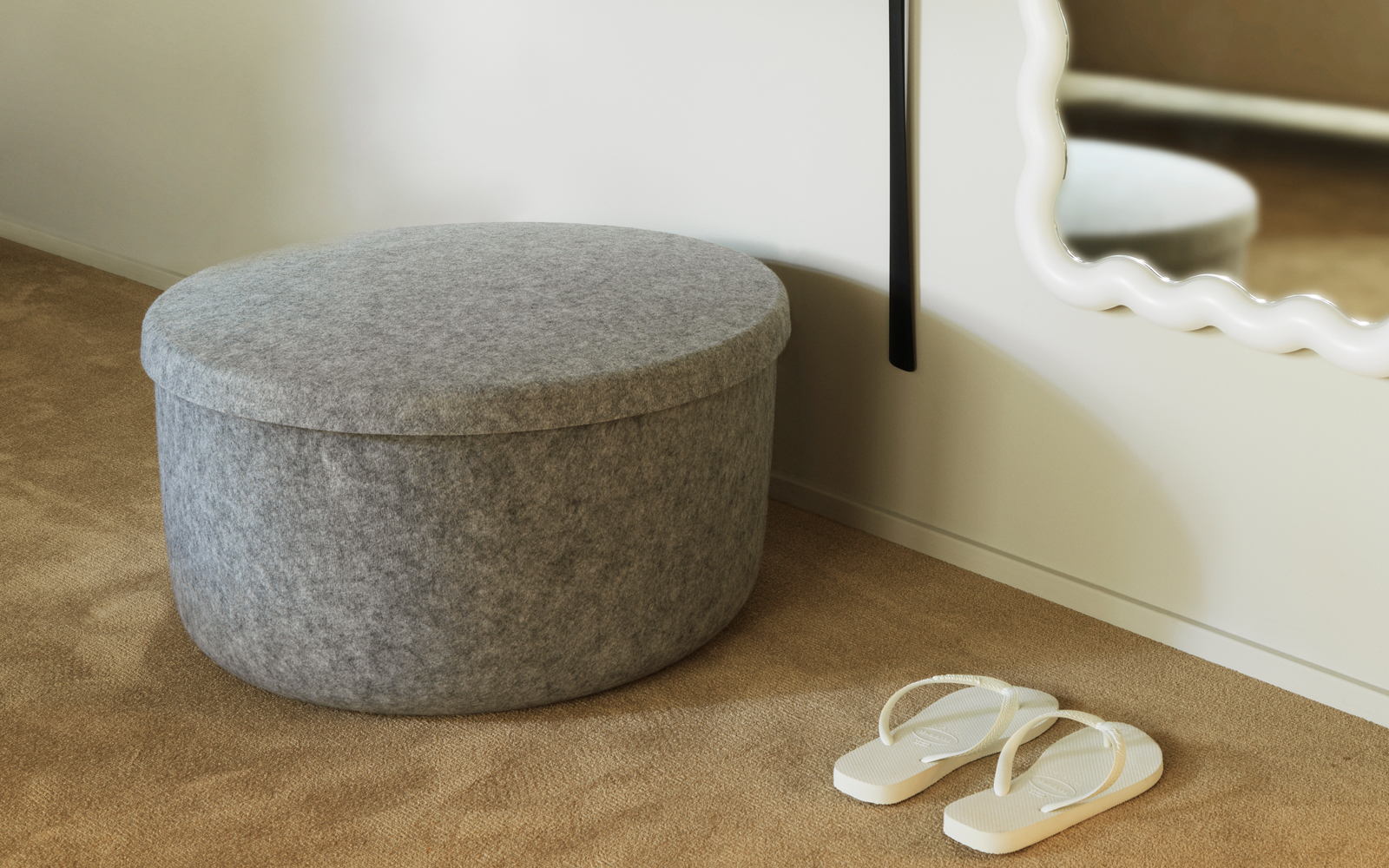 Hide Storage Pouf is een veelzijdig, multifunctioneel meubelstuk dat iets vindingrijker is. De kern van de Hide Storage Pouf is de materiaalsamenstelling. Deze opmerkelijke stof is gemaakt van PET-vilt en is gemaakt van post-consumer plastic flessen die een transformatief proces ondergaan waarbij ze worden geëxtrudeerd tot fijne polyestervezels, die vervolgens zorgvuldig worden geperst om een ??duurzaam en esthetisch viltmateriaal te creëren.