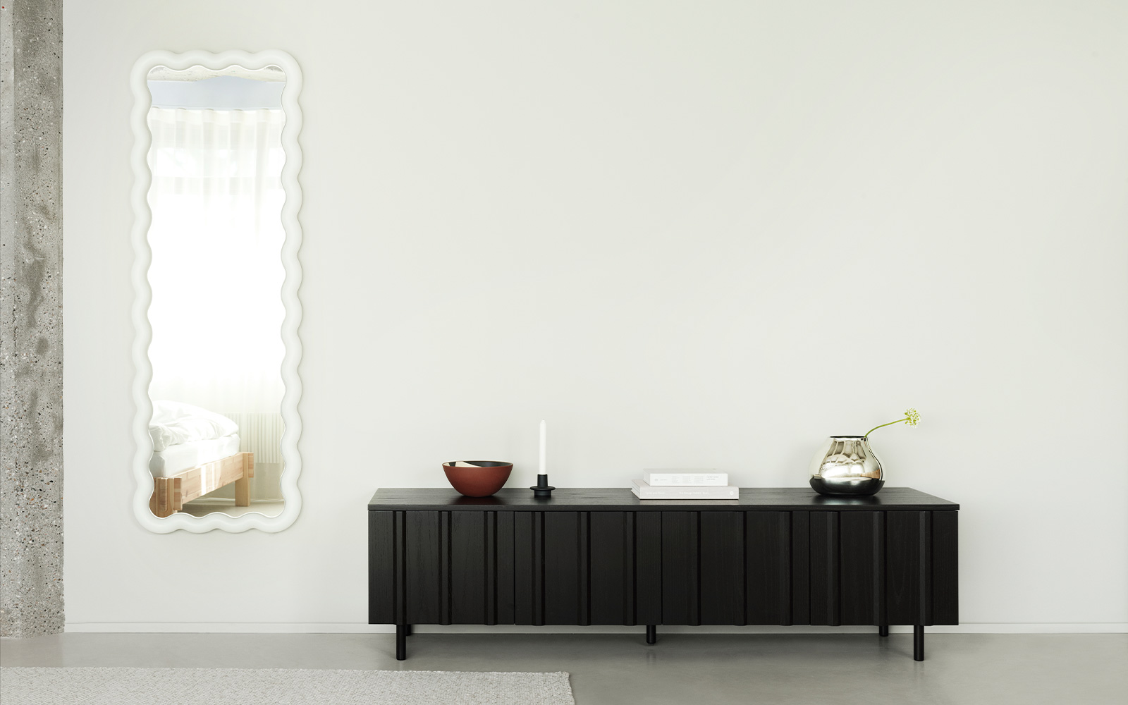 Illu is een prachtige spiegel die zich onderscheidt door zijn unieke, golvende frame en ingebouwd dimbaar LED-licht. Een opvallend ontwerp dat zowel decoratieve als functionele elementen combineert, waardoor het een waardevolle toevoeging is aan elke kamer in huis. Illu presenteert een onconventionele spiegel met een speelse expressie en een intrigerend kader dat de spiegel zelf verlicht, wat karakter en finesse aan het ontwerp toevoegt. Het wikkelframe is ontworpen met een specifieke dikte om ruimte te maken voor de geïntegreerde verlichting en zo voor de juiste sfeer te zorgen. Wanneer het wordt verlicht, wordt het frame een verlichting en presenteert het een apart karakter dat de spiegel op betoverende wijze transformeert.
