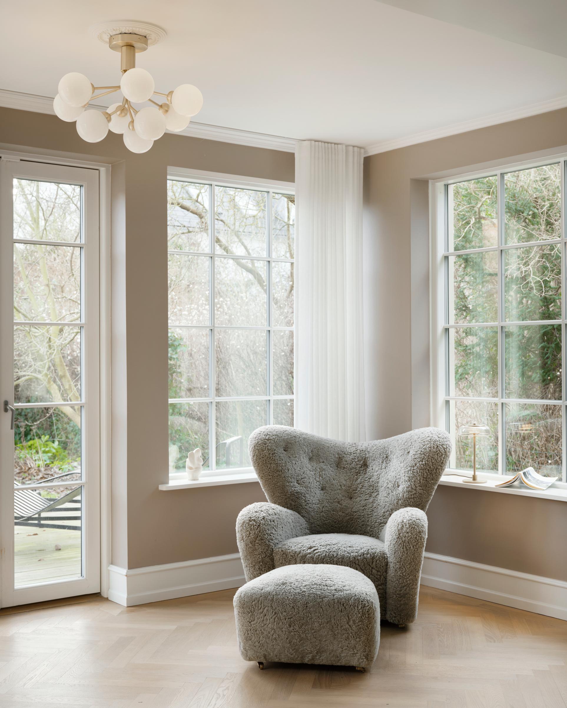 Geïnspireerd door bloemen heeft Sofie Refer de Apiales-collectie ontworpen. Apiales 9 Plafond is een plafondgemonteerde kroonluchter met 9 mondgeblazen glazen bollen. Vanuit een speciaal vervaardigd bladerdak ontvouwen de armen zich als bloemstengels van waaruit het licht sierlijk wordt verspreid. Apiales 9 Plafond heeft een lage hoogte van slechts 40 cm. Dit geeft de kroonluchter een grote flexibiliteit in zijn toepassing en maakt het mogelijk om een ??kroonluchter op te hangen in ruimtes met lagere plafonds of in tussenruimtes.