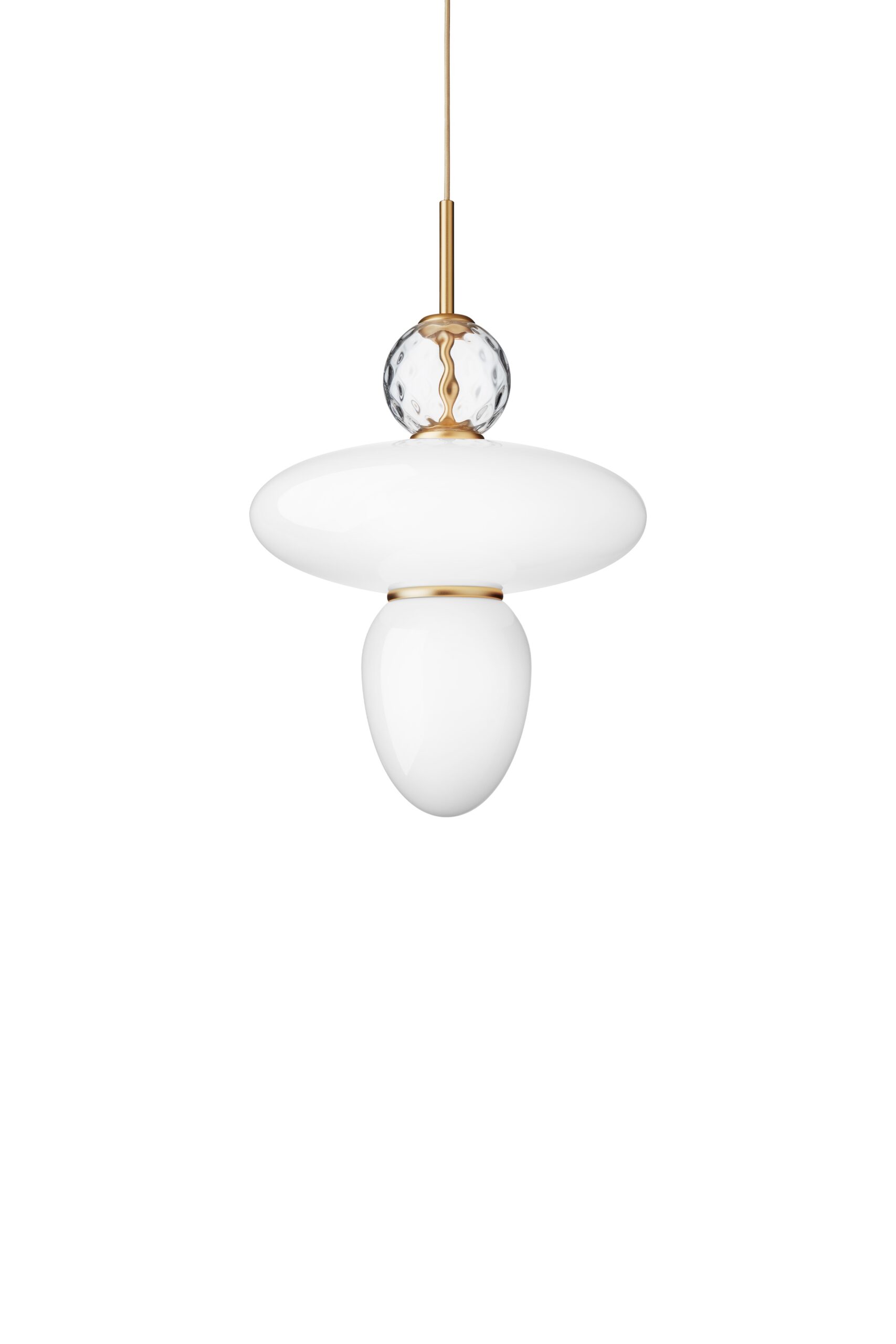De Rizzatto verlichtingscollectie is gecreëerd in samenwerking met de Italiaanse architect Paolo Rizzatto. Geïnspireerd door de kostuums van de avant-garde artistieke dans Triadisches Ballet, heeft de Rizzatto 43 hanglamp geometrische gevormde tinten in een mix van optisch helder en opaalwit glas, aan elkaar gemonteerd. De hanger is afgezet met details in een satijnzilveren metalen afwerking, waardoor een zacht accent op het mondgeblazen glas ontstaat. Rizzatto 43 creëert comfortabele en decoratieve kwaliteitsverlichting. Inclusief plafondplaat. Rizzatto 43 met details in satijnzilveren metalen afwerking won Design Favorites 2023 in de categorie “hanger”.