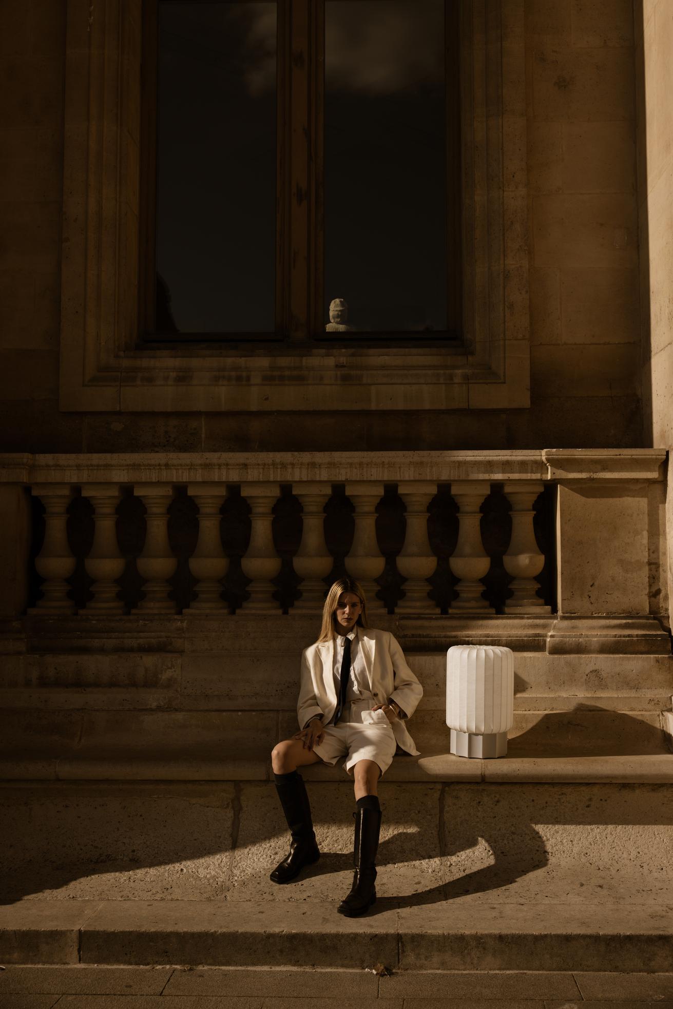 Meter is een uitnodigende, zachte vloerlamp met een sterke aanwezigheid – architectonische verwijzingen en handgemaakte details zorgvuldig gecombineerd. Het ontwerp is dynamisch en prikkelt tot nadenken, een object dat niemand onberoerd laat. Een natuurlijk geometrisch ritme verbindt de draden achter de doorschijnende lampenkap met de gecanneleerde zuilvormige voet. Tegelijkertijd creëert het contrast tussen de gladde coconstof en het ruwe aluminium een ??duidelijke spanning. Een prachtig onwaarschijnlijk huwelijk. Wanneer de lamp aan staat, verspreidt hij een warm, sfeervol licht over de omgeving, wat karakter en zachtheid toevoegt aan elke ruimte.