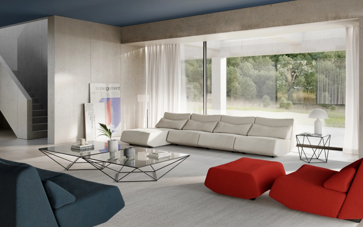 De Absent bank is ontworpen als een modulair systeem dat verschillende rugleuninghoogtes combineert met verschillende zitdieptes, terwijl het zachte kussen bijdraagt ??aan de ergonomie en bijzondere sensuele ervaring van de bank. Het onderscheidende karakter van Absent komt tot uiting in de sculpturale, vloeiende overgangen die resulteren in een sterke identiteit, waardoor het een groots statement meubelstuk in het interieur is. Het is daarom ideaal voor het inrichten van grotere ruimtes.