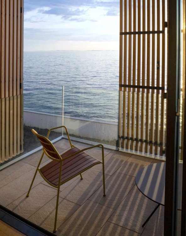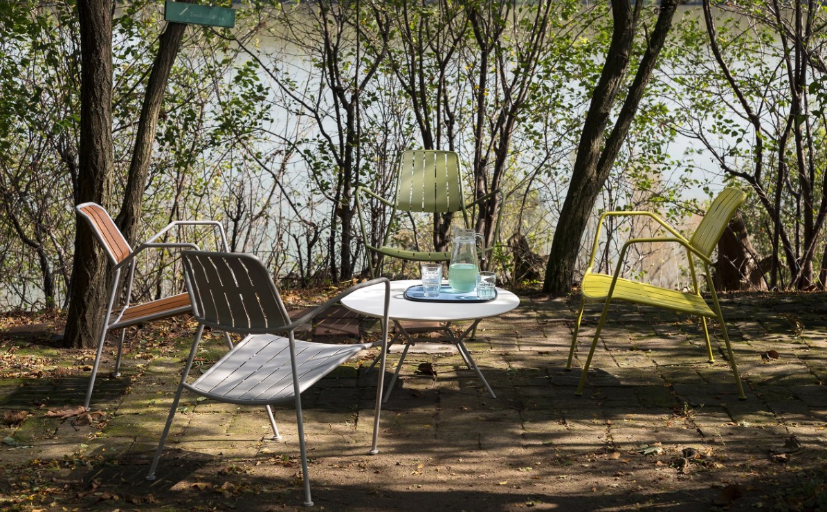 Osmo is een stoel ontwikkeld op basis van de klassieke typologie van stoelen voor terrassen van hotels en restaurants. De staalconstructie in combinatie met de houten zitting en rugleuning zorgt voor een optimaal evenwicht tussen comfort en stijfheid, wat vereist is in een veeleisende context van intensief gebruik buitenshuis, blootgesteld aan zon en zeewater. Een gebogen buisstructuur met expressieve geometrie definieert het frame waarin de zitting en rugleuning van houten leien zijn geplaatst. De karakteristieke helling van de voorpoten gecombineerd met de extreem brede, gebroken armleuning resulteert in een biomorf uiterlijk dat doet denken aan een insectenrobot uit SF-films.