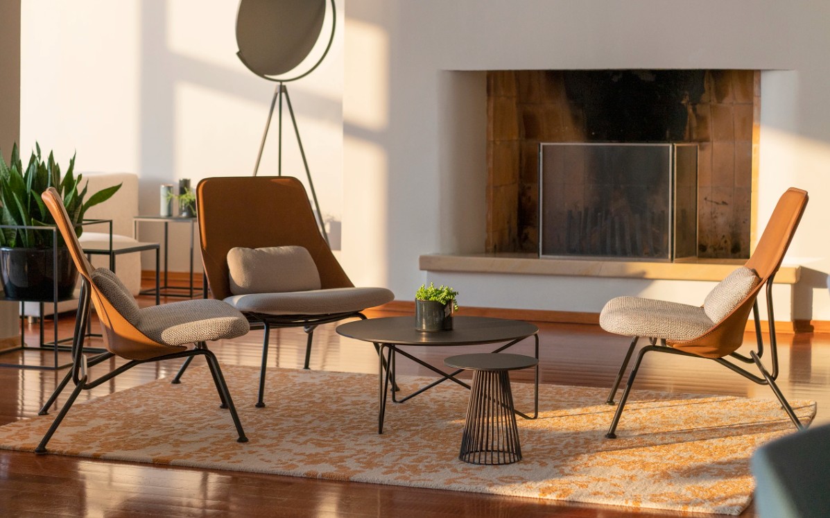 De lage tafels van Strain zijn een ideale aanvulling op de fauteuil, omdat ze met hun lichtheid en eenvoud zowel functioneel als esthetisch de identiteit van de fauteuil aanvullen.