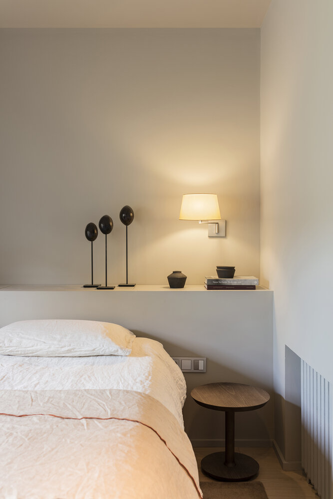 De Americana-serie is opgebouwd rond een roterende arm van satijnnikkel die een elegante witte linnen kap vasthoudt. De arm draait het licht zachtjes dichterbij of verder weg, terwijl de brede metalen voet op zijn plaats blijft, wat de harmonische beweging van swingdansen oproept.
