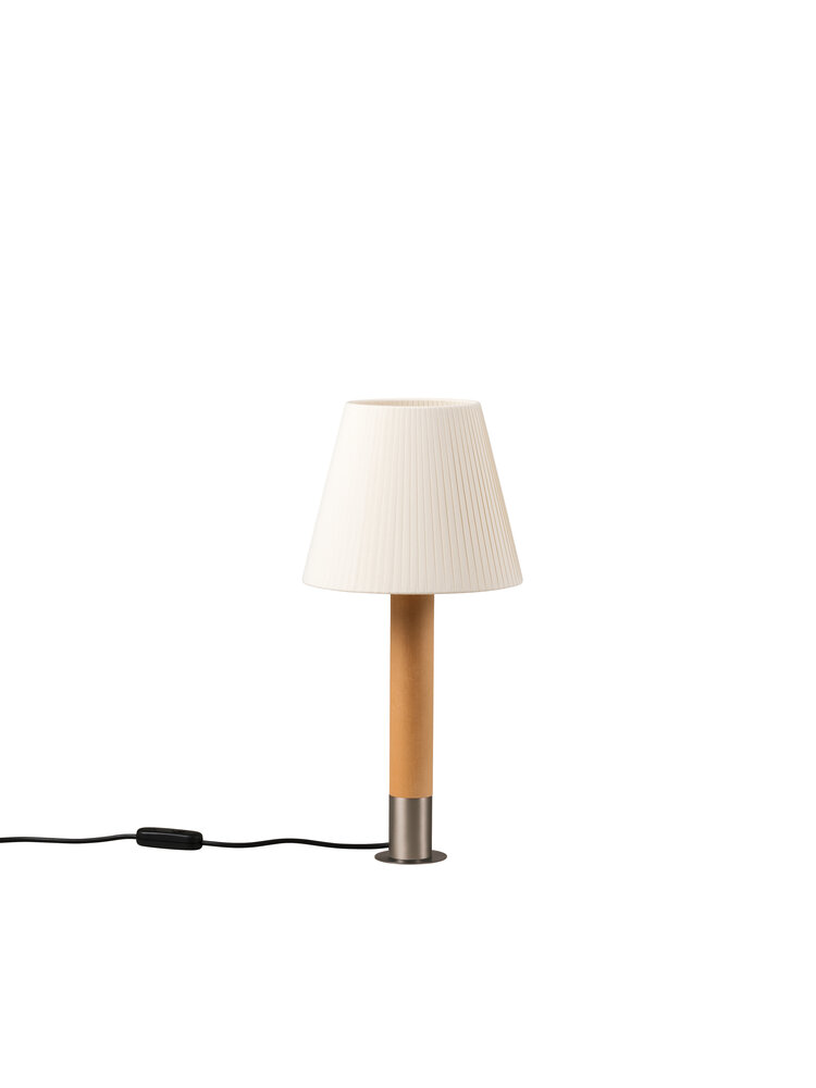 De Básica lamp pleit voor de terugkeer naar natuurlijke materialen. Een berkenhouten cilinder, die wordt ondersteund door een zware metalen basis van gelijke diameter, bevat een verscheidenheid aan lampenkapopties in verschillende vormen en kleuren, gemaakt van genaaid karton of lint. In weerwil van de metaalachtige smaak van de jaren tachtig.
