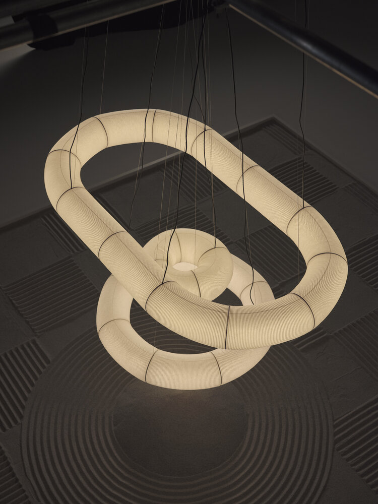 Tekiò, het Japanse woord voor aanpassing, combineert oude ambachtelijke technieken met Warm to Dim LED-technologie die controle van de intensiteit en kleurtemperatuur mogelijk maakt. De zeer technische verlichtingsstructuren van Tekiò zijn zorgvuldig bekleed met handgeschept papier. Afhankelijk van de gekozen combinatie kunnen verschillende lineaire of cirkelvormige vormen van verschillende afmetingen worden gerealiseerd.