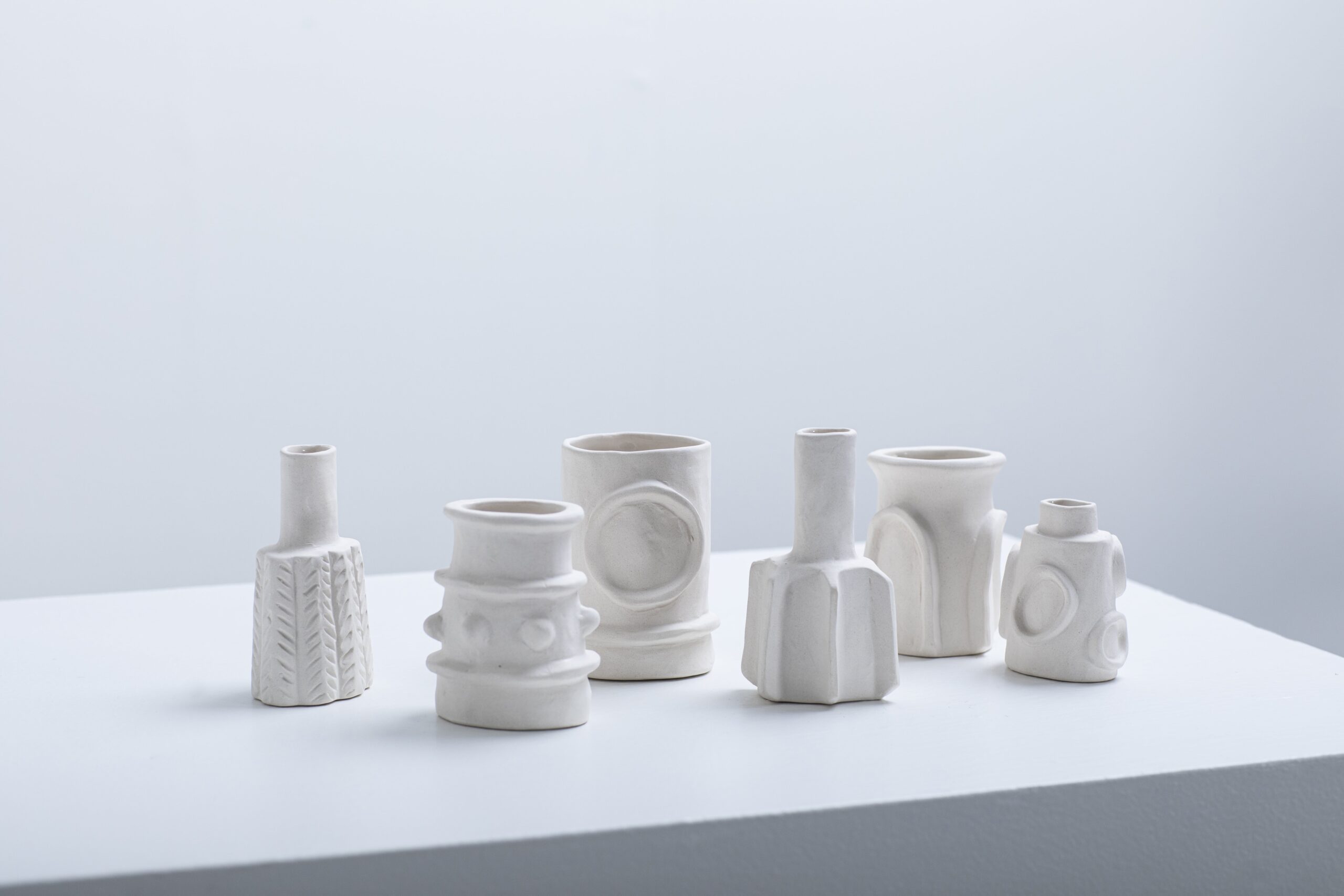 Uitgevoerd in off-white steengoed, mat aan de buitenkant, geglazuurd aan de binnenkant, vormen deze Molly vazen en potten een grafische eye-catcher in elk interieur.