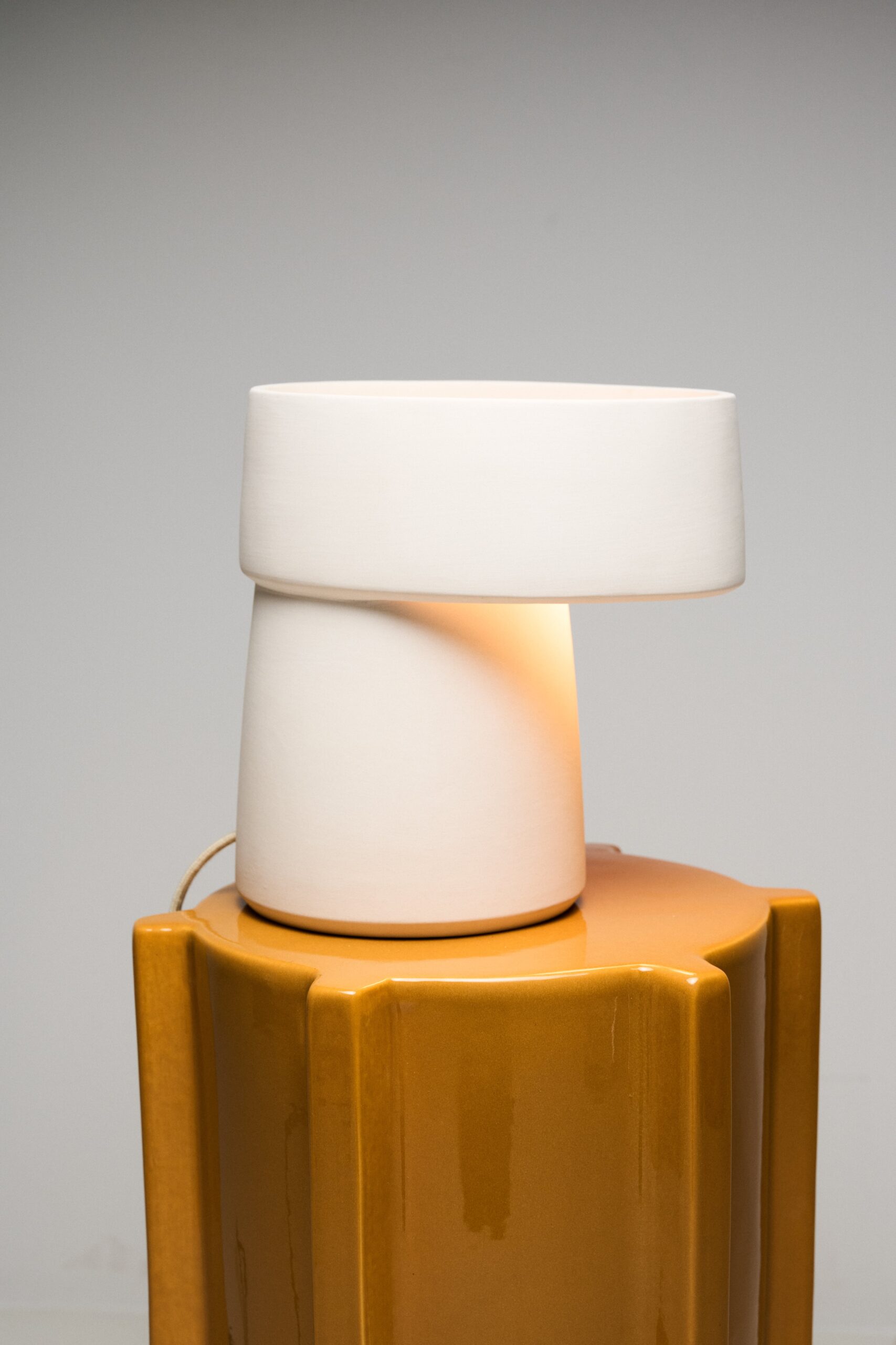 De iconische Pawn-krukken zijn in de loop der jaren veelzijdige objecten geworden in kleurrijke geometrische vormen en verschillende materialen. Haar recente voorkeur gaat uit naar geglazuurde steen, met diepe, rijke kleuren als finishing touch. De toevoeging van horizontale of verticale ribben maakt Pawns esthetisch interessant en biedt grip om de krukken gemakkelijk te verplaatsen.