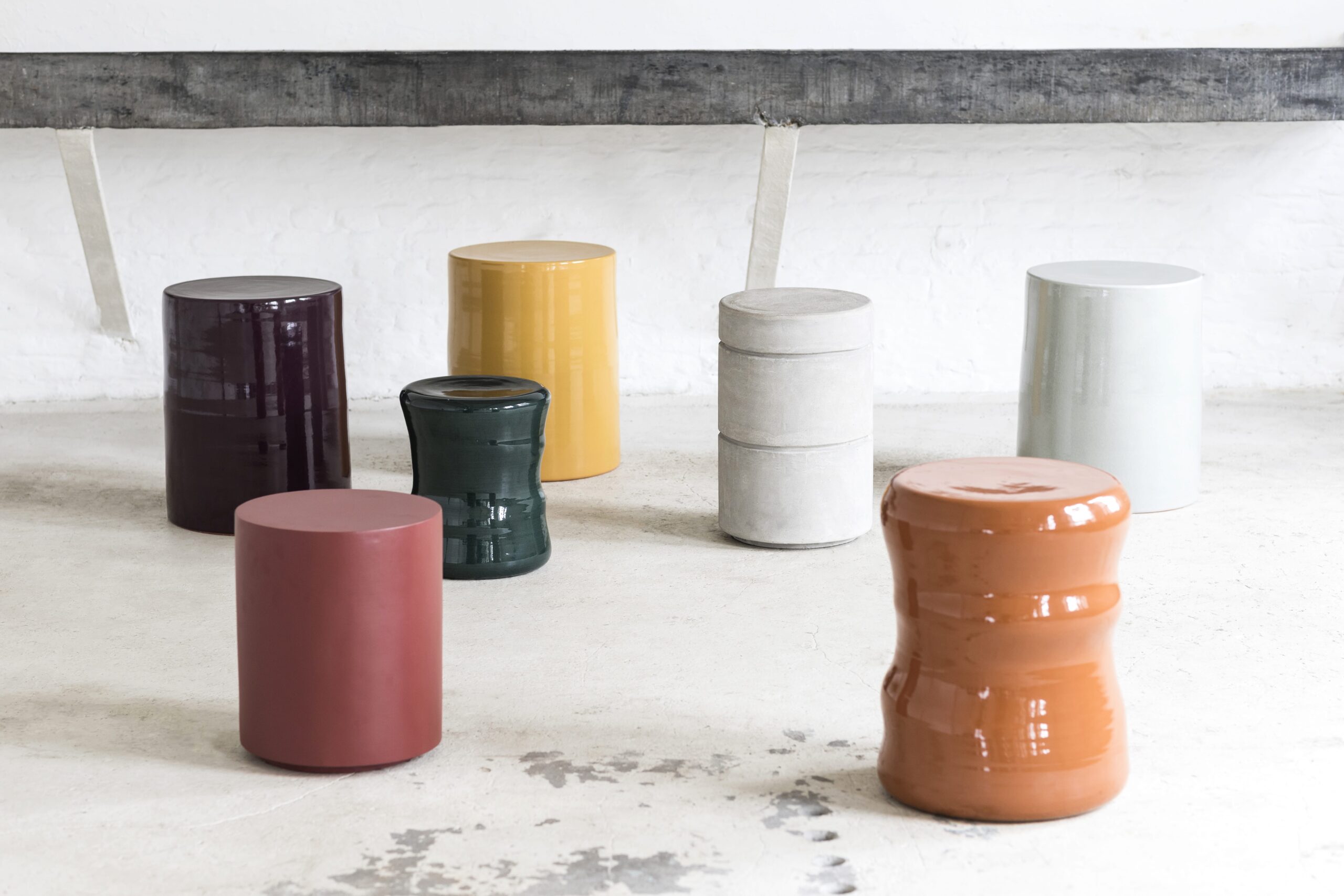 De nieuwe PAWN bijzettafels zijn op een ideale hoogte gebracht om ook als kruk te dienen. Ideaal als er ineens veel bezoek komt. De ontwerpen van Marie Michielssen kregen een glazuurlaag aan de bovenkant. Een mooi contrasterend detail met het ruwe stenen oppervlak, maar ook een functioneel detail. Wie de tafel als kruk wil gebruiken, hangt niet met de kleding aan het ruwe oppervlak.