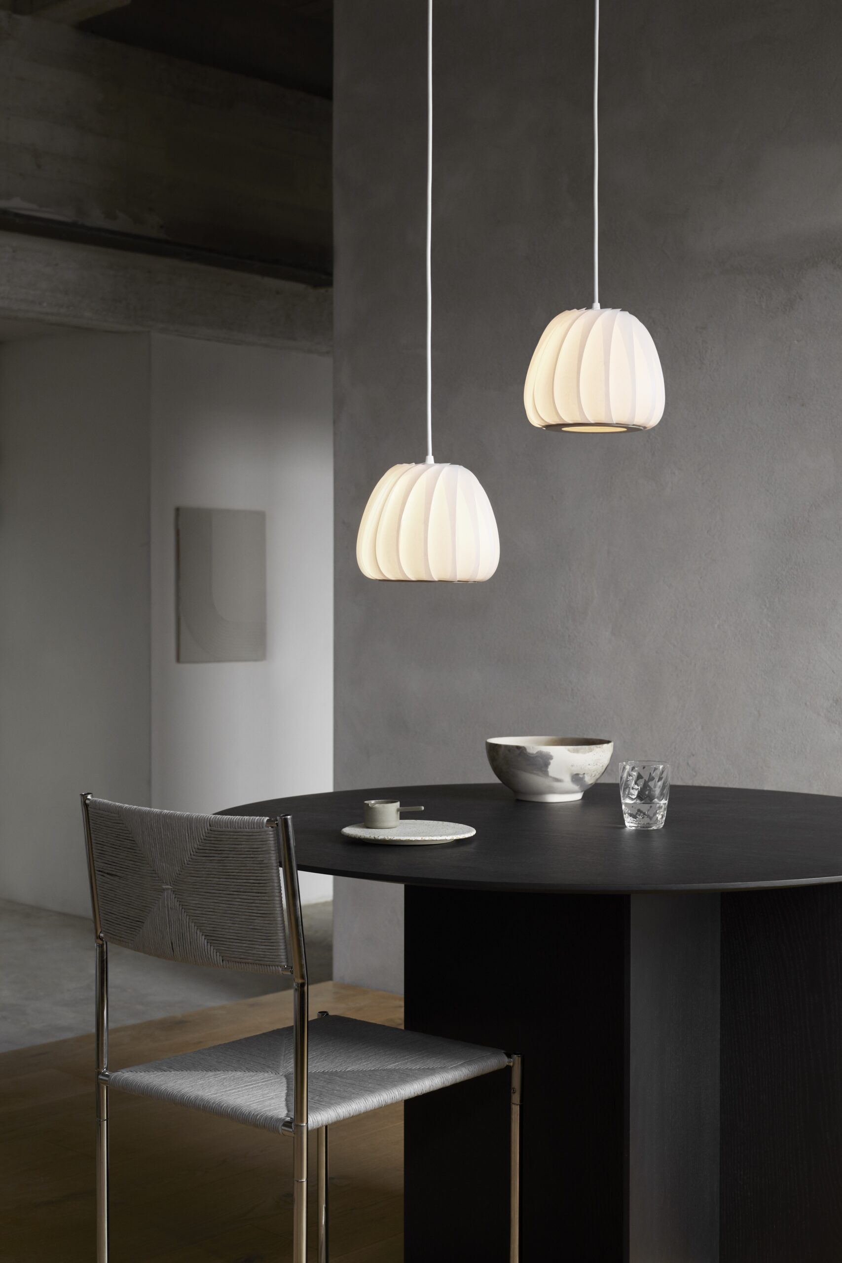 De TR12 heeft een zeer klassieke look, met een zacht, afgerond profiel. Als hanglamp vormt de TR12 een prachtige aanvulling op de eettafel in een enkele, grotere maat, of in een rij in hun kleinere vorm. De TR12 is ook ideaal voor hoge plaatsing, en ziet er prachtig uit als hij in clusters hangt. De materialen van de kap hebben verschillende uitdrukkingen en graden van verlichting. De witte kap zorgt voor een gelijkmatig, algemeen licht in een aangename witte toon, terwijl het effect van het berkenfineer warm is, voor een zachtere sfeer.