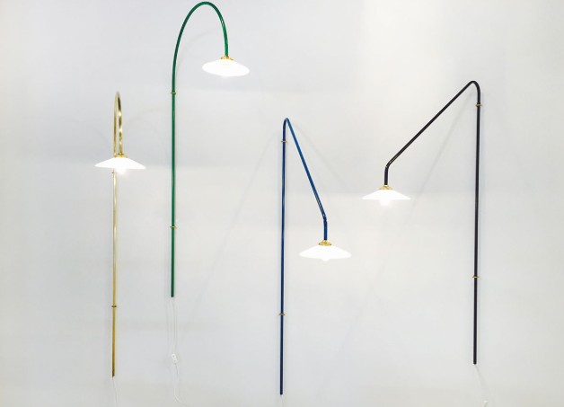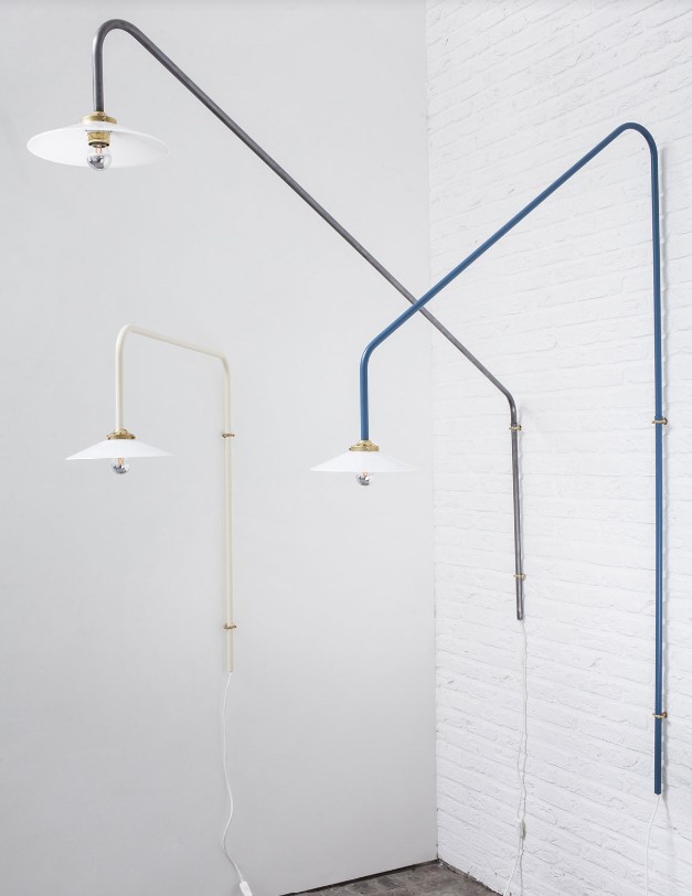 Hoewel de meeste designliefhebbers Muller Van Severen kennen van hun meubels, begon het verhaal van het designkoppel eigenlijk met de conceptie van deze hanglampen. Het begon allemaal uit noodzaak. Hannes legt uit. We waren aan het werk in ons nieuwe huis, een oud huis. Er ontbrak een fitting in het plafond boven de tafel om een lichtbron in aan te sluiten, dus ontwierpen we een lamp die aan de muur kon hangen. De eerste prototypes werden getoond op de allereerste solotentoonstelling van Muller Van Severen in 2011. Tijdens die tentoonstelling vulden Fien en Hannes de galerieruimte Valerie Traan van Veerle Wenes met ontwerpen die eruit zagen alsof iemand een set krijtjes pakte en in de lucht begon te tekenen. Dit is in feite precies hoe deze lampen moeten worden geïnterpreteerd, als schijnbaar naïeve tekeningen die tot leven zijn gekomen. Zoals alle meubels van Muller Van Severen voegen de hanglampen een sobere maar kleurrijke lijn toe aan het interieur. Aan het eind van die lijn hangt een lamp, met een lampenkap die ze aanvankelijk op een vlooienmarkt hebben opgeduikeld. Het is een fantastische lampenkap: perfect neutraal.