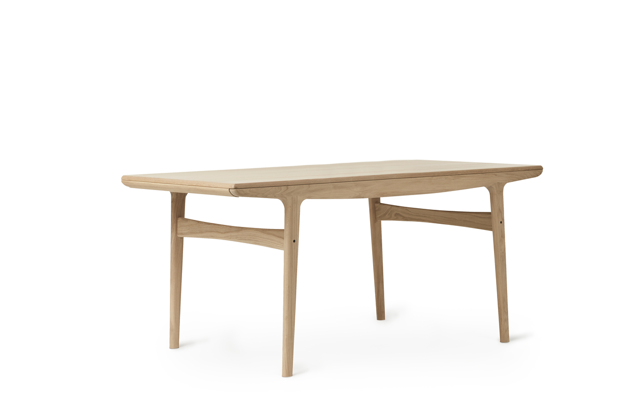 Eenvoudige en tijdloze designtafel ontworpen in de jaren 50 door de bekende Deense meubelontwerper Arne Hovmand-Olsen. Evermore is een klassieke schoonheid die het vakmanschap en de esthetiek van het Deense modernisme naar de hedendaagse eetkamer en conversatiekeuken brengt. Het ontwerp met de typische lijnen van die tijd is kenmerkend voor Arne Hovmand-Olsen, die het prachtige hout de hoofdrol laat spelen. Evermore wordt vervaardigd in zowel thee-geolied als geolied eikenhout van de hoogste kwaliteit en is verkrijgbaar in twee maten. Evermore kan ook in een andere variant gekocht worden met mogelijkheid tot uitbreiding, deze wordt aangeboden inclusief extra platen.
