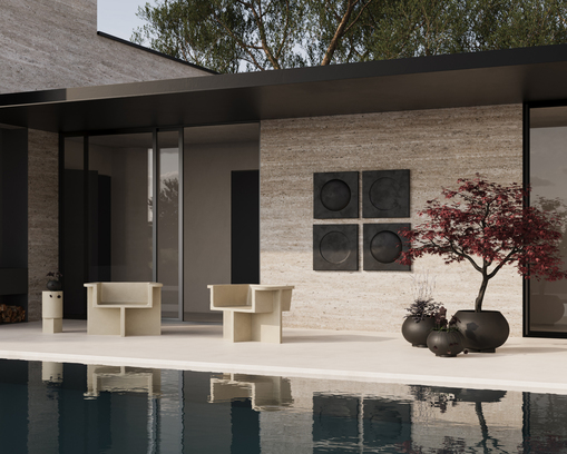 Geïnspireerd door de brutalistische architectuurbeweging van het midden van de 20e eeuw, bestaat de Brutus-collectie uit een eetkamerstoel, een loungestoel, een kruk en een salontafel gegoten in lichtgewicht vezelbeton, wat zorgt voor een unieke oppervlaktetextuur die de mobiliteit vergroot. Elk stuk is met de hand beschilderd om een uniek, getextureerd oppervlak te creëren. De Brutus-collectie benadrukt de fijne balans tussen scherpe architectonische lijnen en een iets zachtere ronding in de rugleuning en armleuningen en is een sculpturaal statement piece met een aantrekkelijk zitcomfort.
