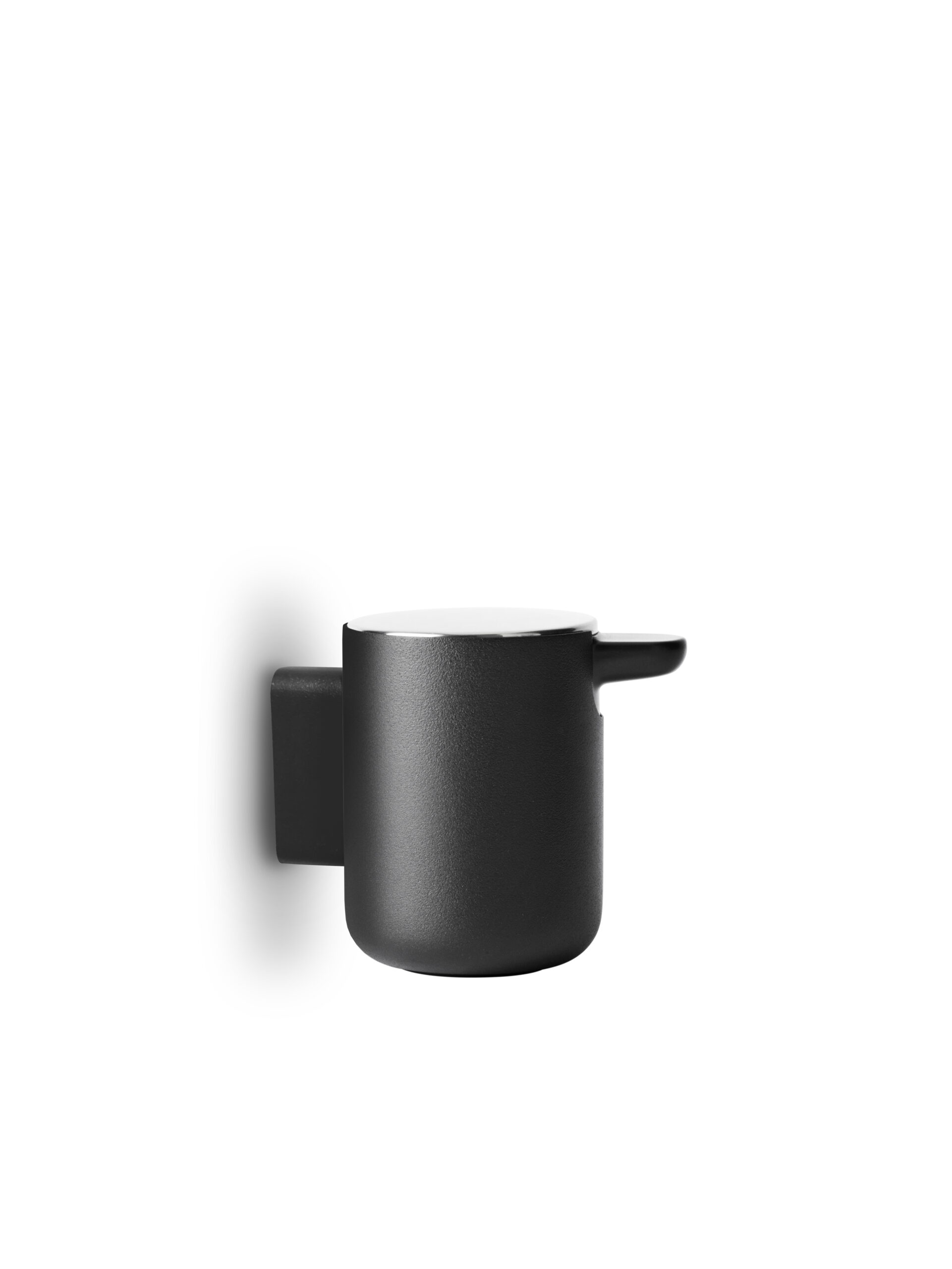 “De Audo Bath Collection van Norm Architects blijft zich uitbreiden om aan nieuwe interieurbehoeften te voldoen – en nieuwe mogelijkheden te creëren om onze ruimtes intelligenter en efficiënter te gebruiken. De toiletborstel, zeeppomp en tandenborstelhouder, oorspronkelijk gemaakt in vrijstaande versies, zijn nu verkrijgbaar in aan de muur gemonteerde edities in zowel zwart als wit, waardoor vloer- en aanrechtruimte vrijkomen. Met het creëren van de Bath Series wilde Norm Architects de badkamer transformeren in een zalig toevluchtsoord waar we kunnen ontspannen en opfrissen. De nieuwe, eenvoudig te monteren edities voegen een nieuw niveau van gemak toe aan de badkamerruimte, waardoor opruimen een fluitje van een cent wordt en de vloer en het aanrecht minder rommelig worden voor een netter uiterlijk. In openbare ruimtes zoals hotel-, kantoor- of restaurantbadkamers zorgt de montagemogelijkheid er ook voor dat deze essentiële voorwerpen op hun plaats en uit de weg blijven – maar altijd binnen handbereik. De liefde van Norm Architects voor functioneel minimalisme komt tot uiting in elk badkameraccessoire, waarbij de objecten reageren op behoeften uit het echte leven, terwijl ze hun aantrekkelijke, moderne expressie behouden. Lichte, uniforme lijnen en afgeronde basissen verenigen de elegante stukken en voegen prachtige accenten toe aan enkele van onze belangrijkste ruimtes. Met doordachte, functionele details zijn de ontwerpen zowel hygiënisch als gebruiksvriendelijk. Een stijlvolle, eenvoudige en praktische zeepdispenser die gemakkelijk schoon te maken, gemakkelijk te gebruiken en gemakkelijk bij te vullen is als hij leeg is. Kantel de dispenser gewoon naar voren om hem bij te vullen. Door een aanraking van het geborstelde stalen deksel komt de zeep vrij. Verkrijgbaar in standalone- en wandmontageversies in zwart of wit.”