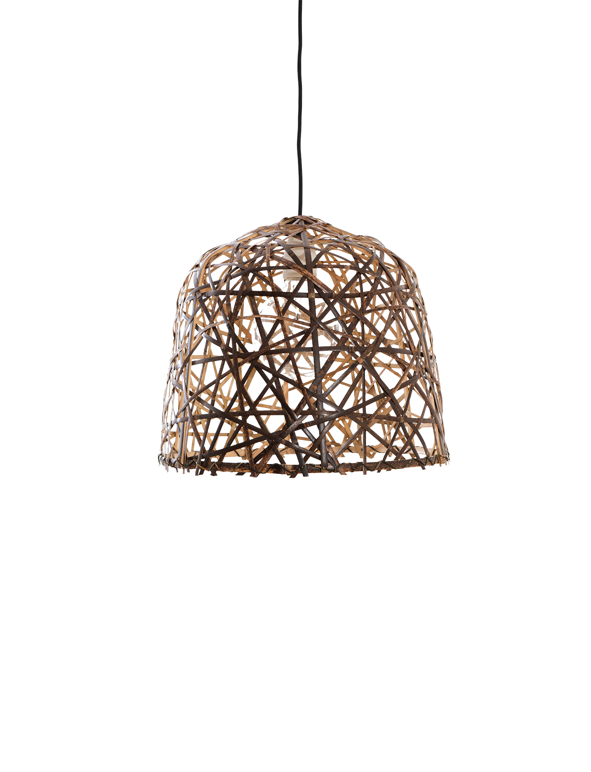 “Geïnspireerd door de delicate complexiteit van de architectuur van de natuur, straalt dit hangende meesterwerk een zachte, gevlekte gloed uit, die het spel van zonlicht weerspiegelt door dicht gebladerte door het web van bamboemateriaal. Breng uw omgeving naar een hoger niveau met deze transcendente creatie, waarin organisch kunstenaarschap en verfijnd vakmanschap naadloos samensmelten. Vogelnest is verkrijgbaar in de kleur zwart en in de maten small en medium. “