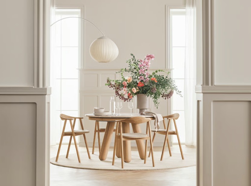 “De Bolia Balance eettafel, ontworpen door Michael H. Nielsen, combineert elegante en natuurlijke materialen voor een stijlvolle eetkamer. Gemaakt van FSC®-gecertificeerd eikenhout en voorzien van een luxe stenen tafelblad, straalt deze tafel verfijning en duurzaamheid uit. Het ronde ontwerp met robuuste poten maakt de tafel een opvallend middelpunt in elke ruimte. Verkrijgbaar met uitschuifbare eiken verlengbladen, biedt de Balance eettafel flexibiliteit voor grotere gezelschappen, zonder concessies te doen aan het strakke Scandinavische design. De combinatie van hout en steen geeft een warme en sfeervolle uitstraling, perfect voor gezellige diners. De Bolia Balance eettafel is een ideale keuze voor wie op zoek is naar een tijdloos en stijlvol ontwerp dat functionaliteit en esthetiek moeiteloos combineert.”