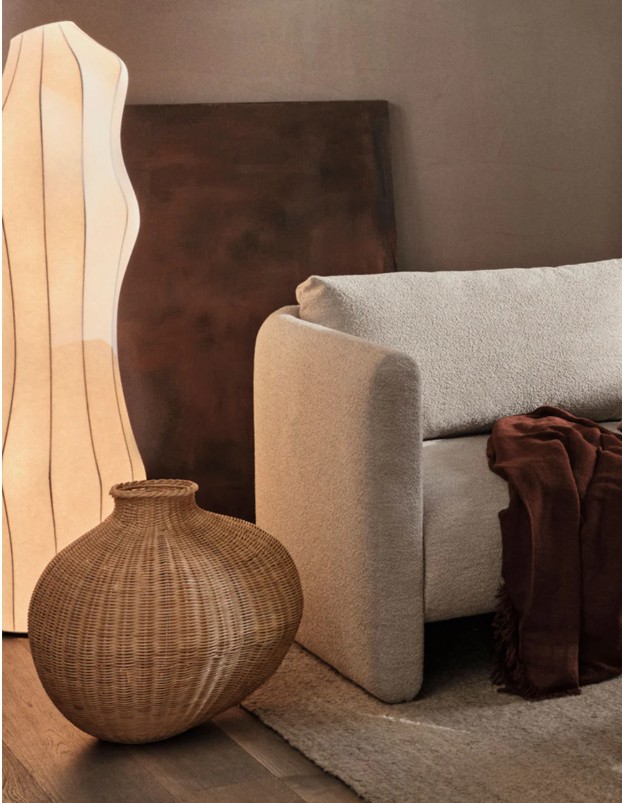 De gevlochten Bola-vloervaas speelt met onconventionele vormen en organische texturen om een natuurlijke, elegante esthetiek in je interieur te brengen. De bolvormige vaas is met de hand gevlochten uit natuurlijk rotan, heeft royale afmetingen en is ideaal om droge bloemen of takken in te zetten, maar staat ook prachtig als los element.