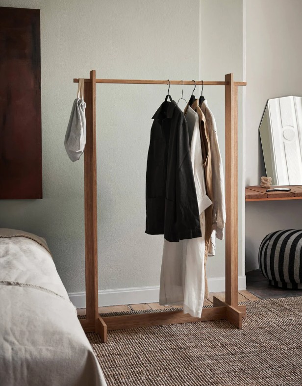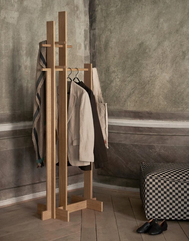 De Bridge-kledingstandaard herdefinieert het opbergen van kleding met zijn verhoogde ontwerp. De kledingstandaard is geïnspireerd op houten architectonische constructies en heeft luchtige, strakke lijnen. Vervaardigd van FSC®-gecertificeerd eikenfineer met MDF kern, ingewikkelde details en vakkundig schrijnwerk maken het een opvallend item dat functionaliteit en elegantie naadloos combineert. Met meerdere rails en haken biedt het een stijlvolle oplossing voor het ophangen van kleding, hoeden, jassen en meer.