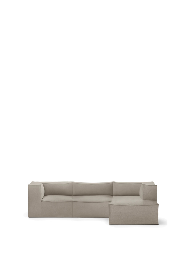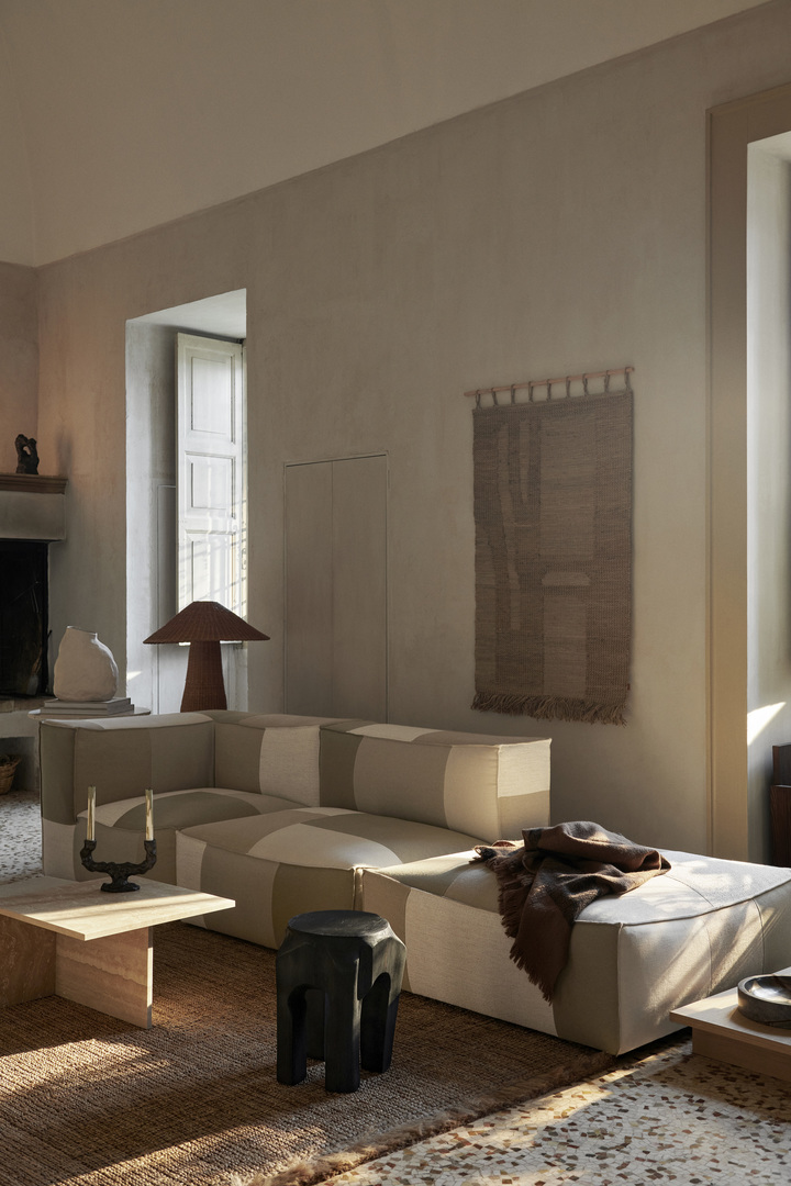 “Deze stof is gemaakt van een eersteklas Italiaanse garenmix en is geïnspireerd op Can Lis. Expressieve, verhoogde lijnen zijn verweven tot een oppervlak met een rijke textuur en doen denken aan de vloeiende beweging van vliegende vogels. Dit abstracte patroon weerspiegelt een gevoel van elegantie en vrijheid, terwijl de tactiele diepte en het rijke materiaal van de stof bijdragen aan een warme en toch verfijnde uitstraling. De Catena-serie bestaat uit afzonderlijke zitbankmodules die op verschillende manieren kunnen worden gecombineerd om de gewenste expressie te creëren. De omhelzende, op zitzakken geïnspireerde vorm van de lage bank heeft royale afmetingen en biedt totale ontspanning en gezelligheid. In combinatie met de stof biedt de Catena-bank een uitnodigend gevoel van comfort dat de rijke textuur van de stof versterkt. Samen vormen ze een harmonieus samenspel tussen vorm en functie en verenigen ze tactiele luxe met natuurlijke inspiratie. Bovendien is de binnenconstructie van de Catena Bank gemaakt van FSC®-gecertificeerd hout.”