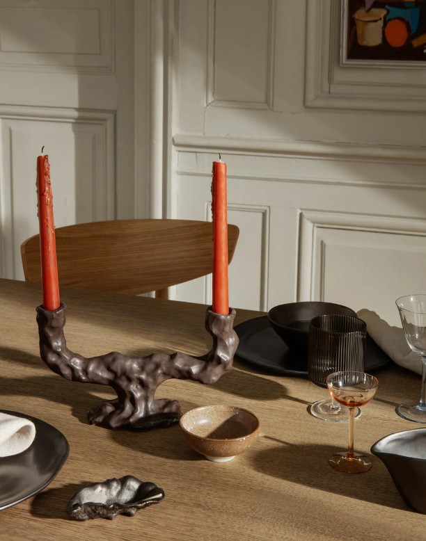 De Dito kaarsenhouder, gemaakt van steengoed met een matte glazuur, heeft een unieke, tactiele uitstraling. Oorspronkelijk met de hand gebeeldhouwd, zijn de karakteristieke vorm en het patroon afkomstig van het drukken van vingers op de klei. Het was deze manier van boetseren die de inspiratie vormde voor de naam: Dito, wat vinger betekent in het Italiaans. Dankzij het kleine handvat is hij gemakkelijk te verplaatsen.