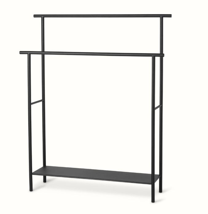 De Dora-collectie bestond oorspronkelijk alleen uit de Dora-kledingstandaard, maar is nu uitgebreid met een serie vrijstaande meubels die ideaal zijn voor in de badkamer. De eenvoudige maar functionele ontwerpen zijn gemaakt van metaal met poedercoating en zijn roestbestendig, dus ideaal voor gebruik in vochtige omstandigheden. Met de Dora-handdoekstandaard kun je meerdere handdoeken tegelijk ophangen en eronder heb je extra opbergruimte.