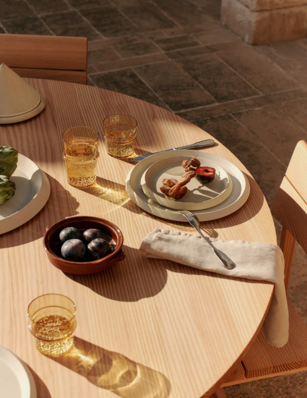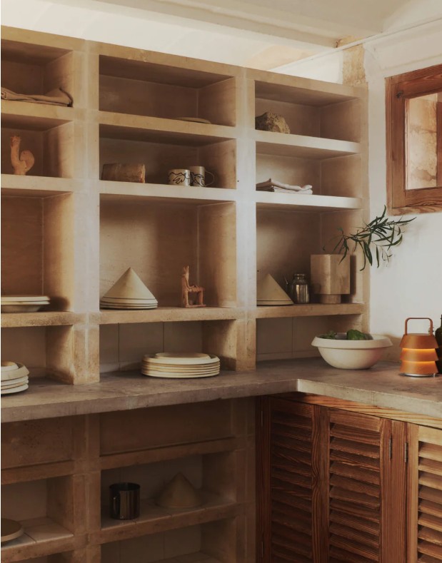 De Erena-serie is een eerbetoon aan het mediterrane erfgoed en de culinaire tradities van Mallorca. De conische vormen van het servies zijn geïnspireerd op de ’tajine’, een traditionele Noord-Afrikaanse kookpot en weerspiegelen de driehoekige vormen van het dak van Can Lis. De Erena Stolp is gemaakt van steengoed met een reactief crèmeglazuur, waardoor elk item uniek is. De stolp past naadloos op het Erena Kleine bord, waardoor de presentatie van gerechten iets spannends en verfijnds krijgt.