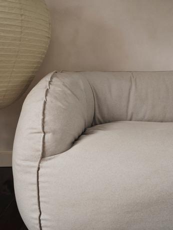 “De Nesten Loungestoel is geïnspireerd op de ontspannen vorm van een zitzak en biedt met zijn relaxte ontwerp een uitnodigende en unieke comfortabele zitervaring. Hij is volledig gemaakt van schuim, inclusief snipperschuim dat overblijft na de productie, en voelt luxueus zacht en licht aan. De gestikte details volgen elegant de contouren van de stoel en voegen een vleugje elegantie toe, terwijl de afneembare hoes eenvoudig gereinigd kan worden. De stoel is perfect om in te loungen en combineert naadloos comfort, functionaliteit en een verantwoorde benadering van materialiteit. De Nesten Loungestoel is bekleed met Re-Cotton, een katoenmix bestaande uit gerecyclede post-consumer vezels.”
