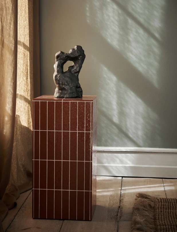 De architectonische Pillar-voet is volledig gemaakt van glasvezelversterkt beton. Om de tactiliteit van het item te vergroten, zijn er groeven gegraveerd in het oppervlak van de sokkel, waardoor het een prachtig patroon heeft dat doet denken aan tegels. Deze robuuste sokkel dient meerdere doelen, als elegante plantenstandaard, veelzijdig bijzettafeltje of indrukwekkend nachtkastje.