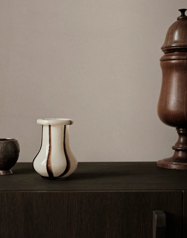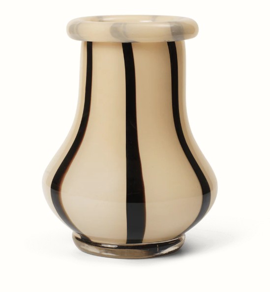 De Riban-vaas, een heerlijke vermenging van traditie en kunstzinnigheid, is geïnspireerd op het klassieke ambacht van het maken van suikersnoepjes. Elk item is met de hand gemaakt van glas en is een unieke creatie. Het toont de vaardigheid van de ambachtsman die de lijnen zorgvuldig vormgeeft en integreert in deze vaas. Het ontwerp doet denken aan snoepgoed, maar heeft een speelse charme.