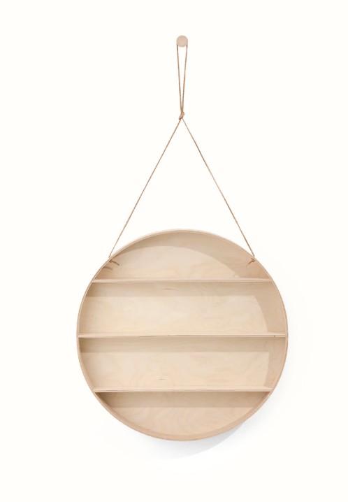 De Round Dorm past in elk huis en geeft de muur een elegante, unieke en verfijnde uitstraling. Gebruik hem om al je favoriete spulletjes in op te bergen. Hij is gemaakt van beuken- en berkenmultiplex, hangt aan een leren koord en wordt geleverd met een beukenhouten haak.