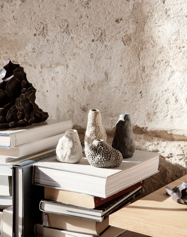De vloeiende vorm en het gestructureerde oppervlak van de Vulca-vaas doen denken aan de ruwe schoonheid van vulkanisch gesteente. De vaas is gemaakt van steengoed met een gebroken wit steenachtig glazuur en heeft opvallende, kleine korreltjes die elk item uniek maken. Vul hem met je favoriete bloemen of gebruik hem als op zichzelf staand statement.