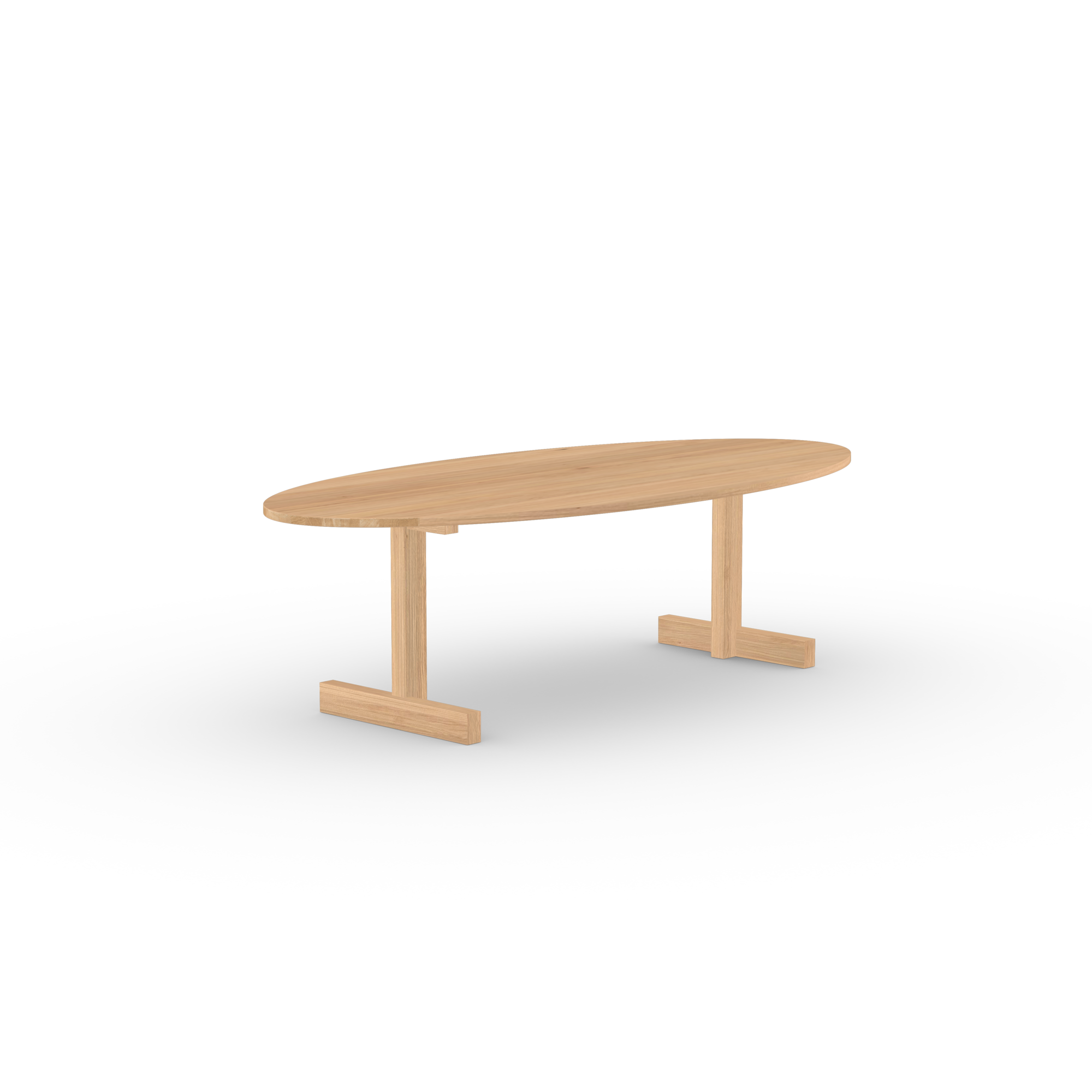 “De Base is een eettafel met een houten frame. Het ontwerp oogt eenvoudig, maar is gemaakt met vakmanschap. Kies zelf de vorm van je tafelblad, ga je voor de de blob vorm tafelblad, een verfrissend, organisch ontwerp waarbij alles draait om het aanpassingsvermogen. Of kies je voor een (plat) ovale vorm? Uiteraard is deze tafel ook verkrijgbaar in een rechthoekige of paper vorm. Welke uitvoering je ook kiest en waar je de tafel ook plaatst, één ding is zeker; de eettafel is hoe dan ook een eyecatcher in je interieur. Tafelblad uitgevoerd in verschillende kleuren eiken- of notenhout. Ook verkrijgbaar met een tafelblad uitgevoerd in HPL afwerking De houten tafelframes worden uitgevoerd in verschillende kleuren eiken- of notenhout”