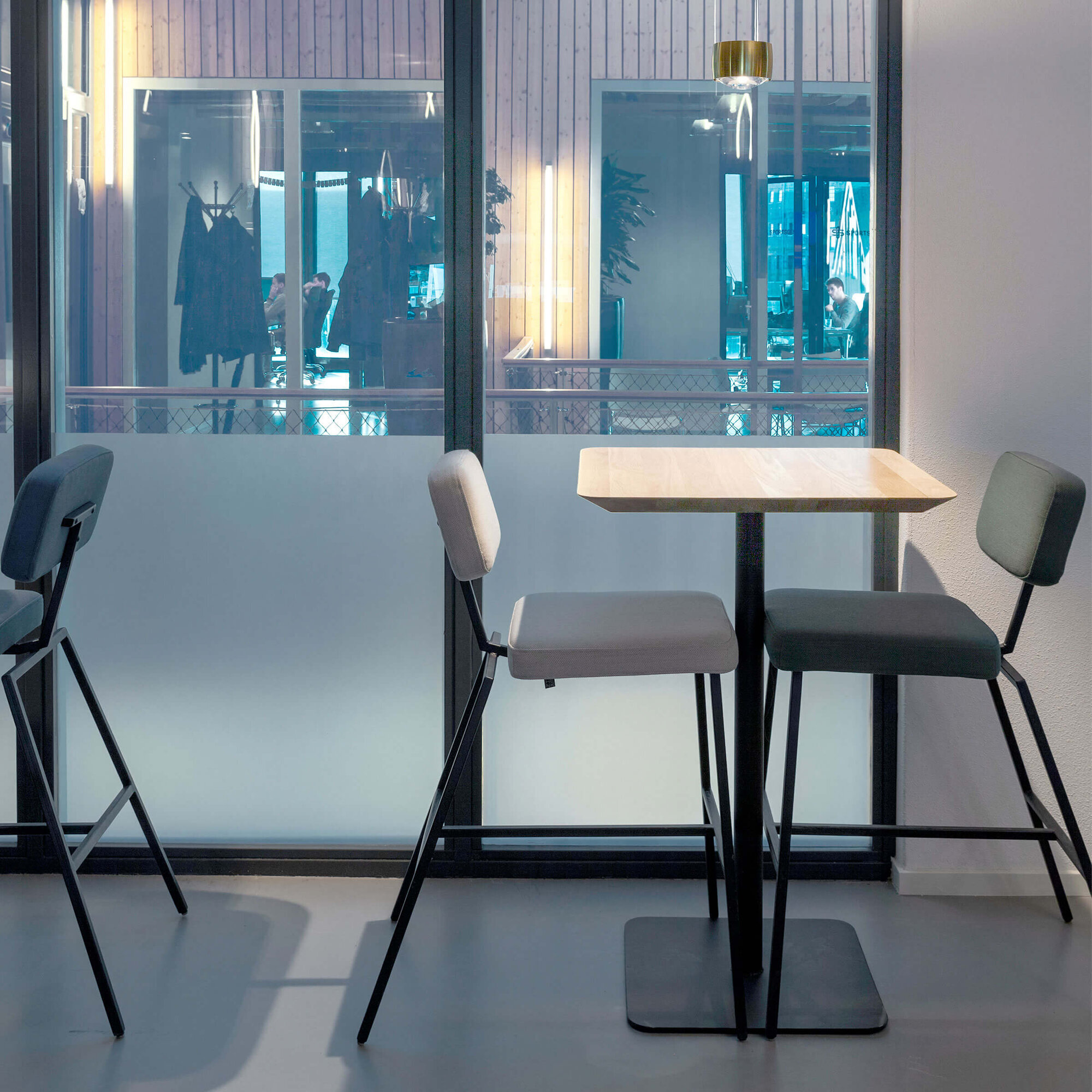 De bistrotafel combineert eenvoud en functionaliteit in een ontwerp dat is gemaakt voor zowel publieke ruimtes als privéwoningen. Het eenvoudige silhouet geeft de bistro een tijdloze uitstraling. Het centrale onderstel draagt tegelijkertijd bij aan de functionaliteit van het ontwerp. Kies voor een rechthoekig, vierkant of rond tafelblad in eikenhout of HPL en creëer een intieme bistro-setting.