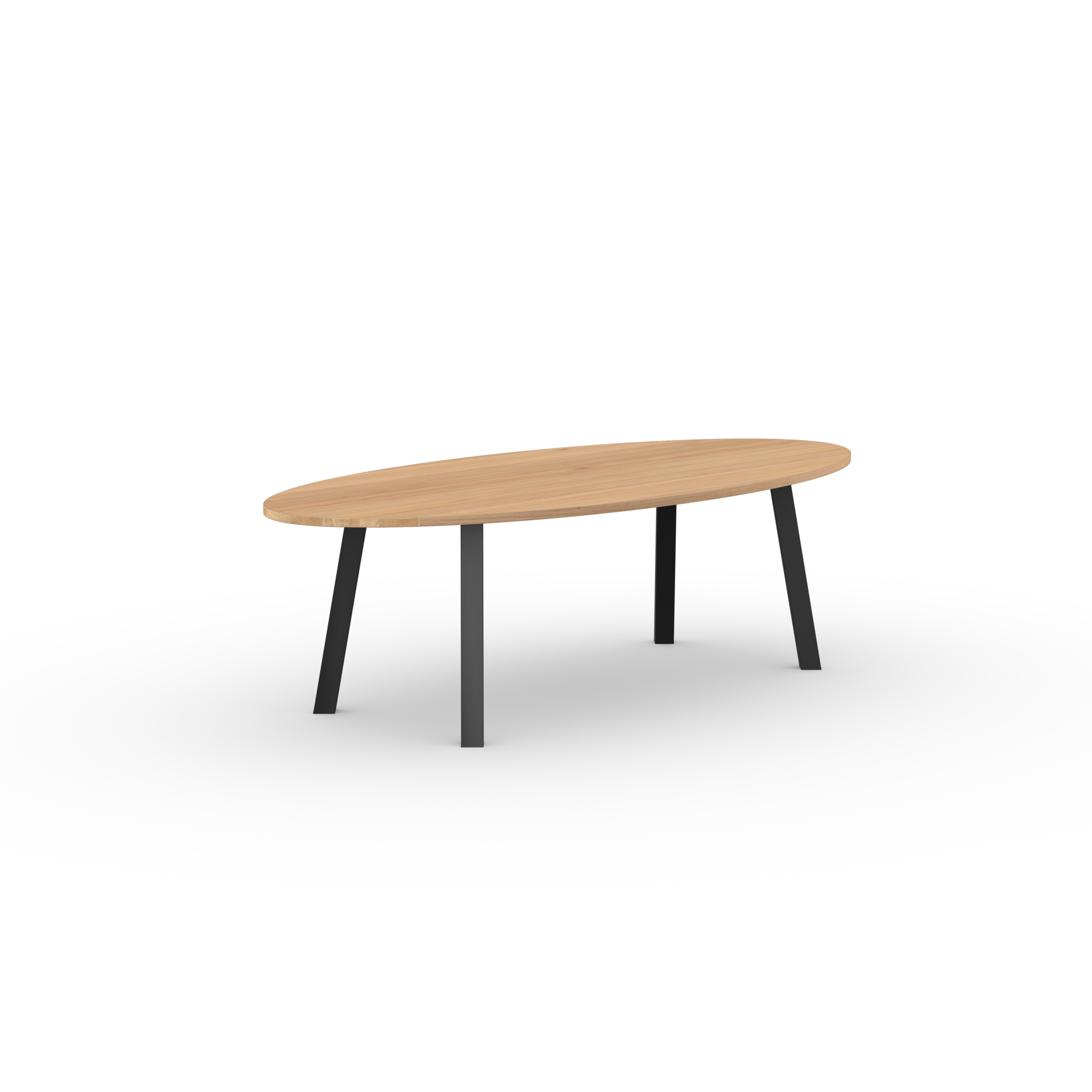 “De Co is Studio HENK’s eerste ontwerp. Voor de designtafel kozen de ontwerpers voor een simpel frame dat zowel esthetisch als praktisch is. Het minimalistische frame stelt je bijvoorbeeld in staat om ook op de kop van de tafel te zitten. Tegelijkertijd past de eettafel in ieder interieur. A-kwaliteit eikenhout met een hardwax olie of een two-componentenlak of HPL Stalen frame 7×7 cm met poedercoating wit of zwart De tafels zijn verkrijgbaar met standaard of verjongde (i.e. afgeschuinde) randafwerking Aan de onderkant van het tafelblad worden ter versterking in de breedte staalprofielen geplaatst. Bij een tafelblad groter dan 240 cm worden er ook profielen in de lengte geplaatst.”
