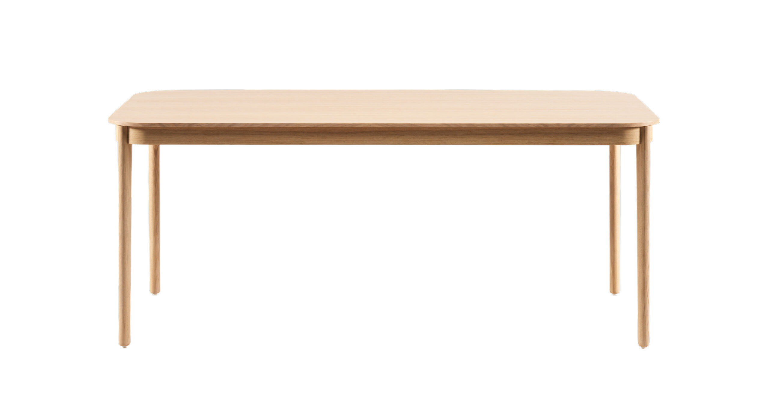 A typical Scandinavian design without unnecessary details. The Figurine feels equally at home in the kitchen as in the dining room and is sturdy and stable. The table seats eight people and offers enough space for large gatherings. The shape of the collection expresses an intricate simplicity with geometric shapes. Round becomes oval and becomes rectangular. Round legs become oval where they meet the rectangular tops. Figurine can be purchased in different colours and stains.