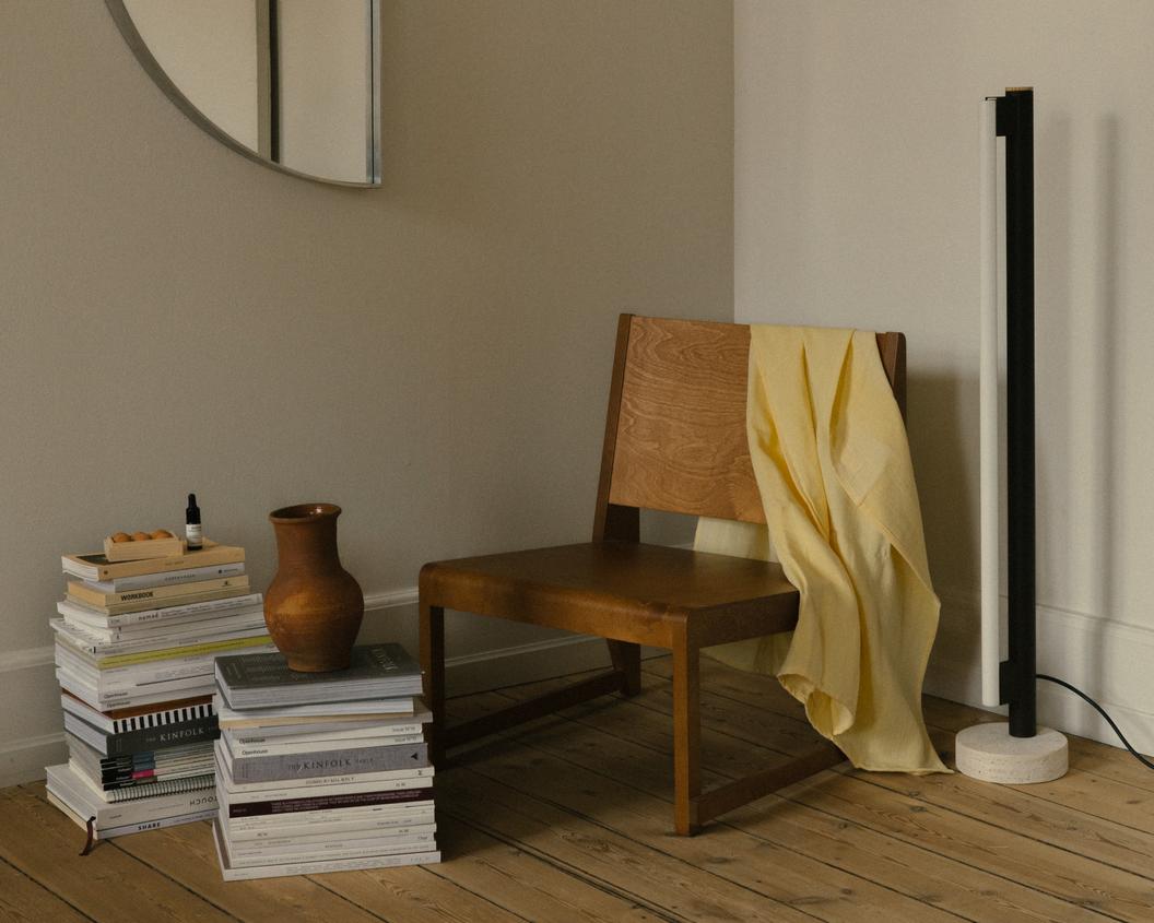 The Eiffel floor lamp is a natural evolution of the series designed by Krøyer-Sætter-Læssen, where the shape is grounded with a natural stone base. The softly diffused light is dimmable, making the atmosphere good everywhere; next to the bed, in the hallway or in the living room.