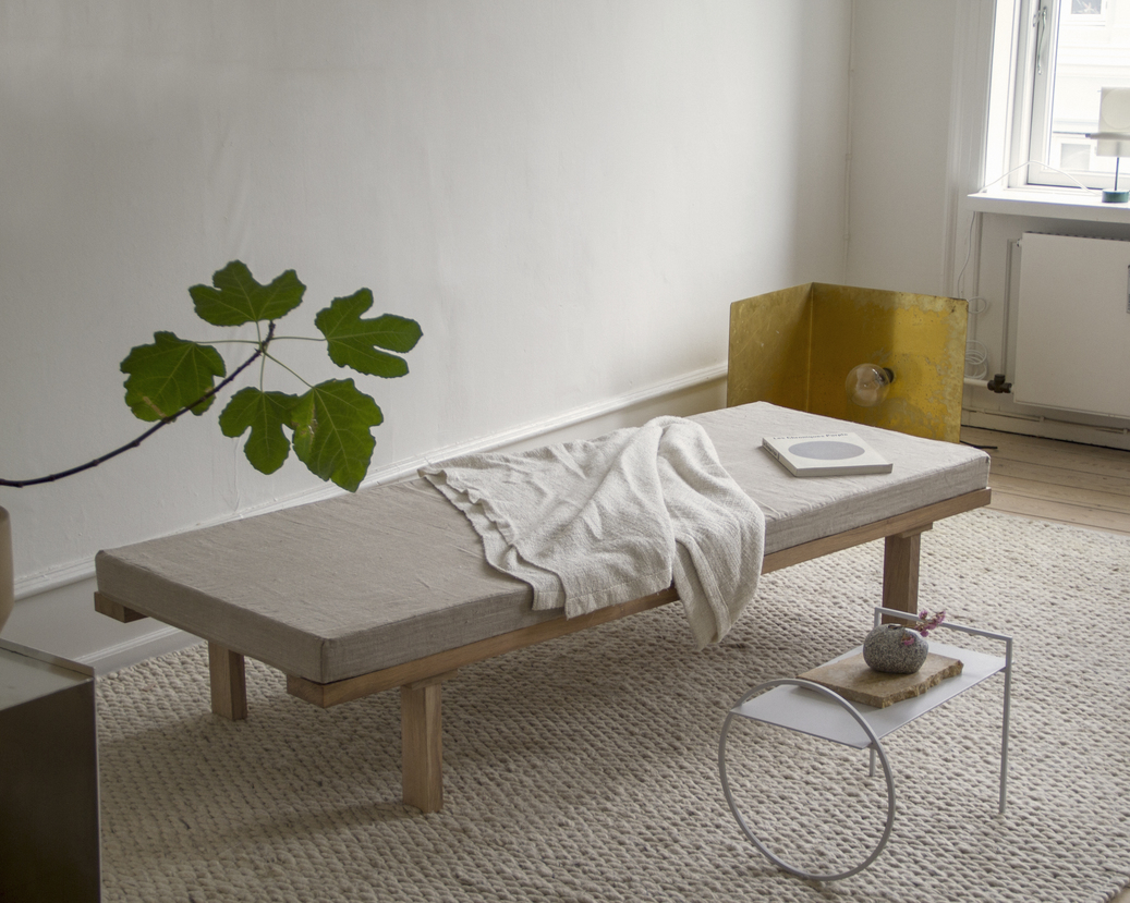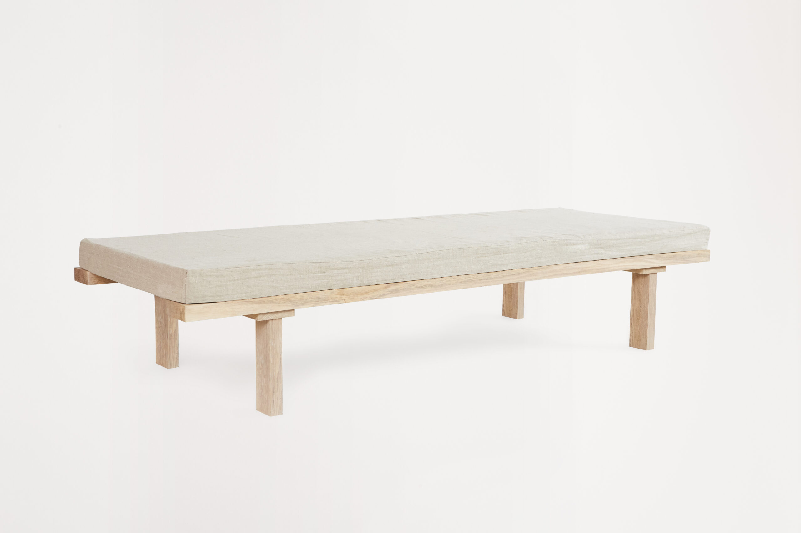 Winston Daybed by FRAMA is made of solid white oiled oak frame with a soft foam mattress. Kim Richardt, who designed this daybed, uses the individual contrasts of both vertical and horizontal lines to create a structurally clean shape in the daybed. The mattress in the daybed is made of three layers of foam, which gives you extra comfort when you sit in the daybed. The daybed is perfect for your living room or as a guest bed, or if you just have someone staying. Please note, however, that the mattress and frame are delivered flat packed separately. The daybed is easy to assemble without the use of tools