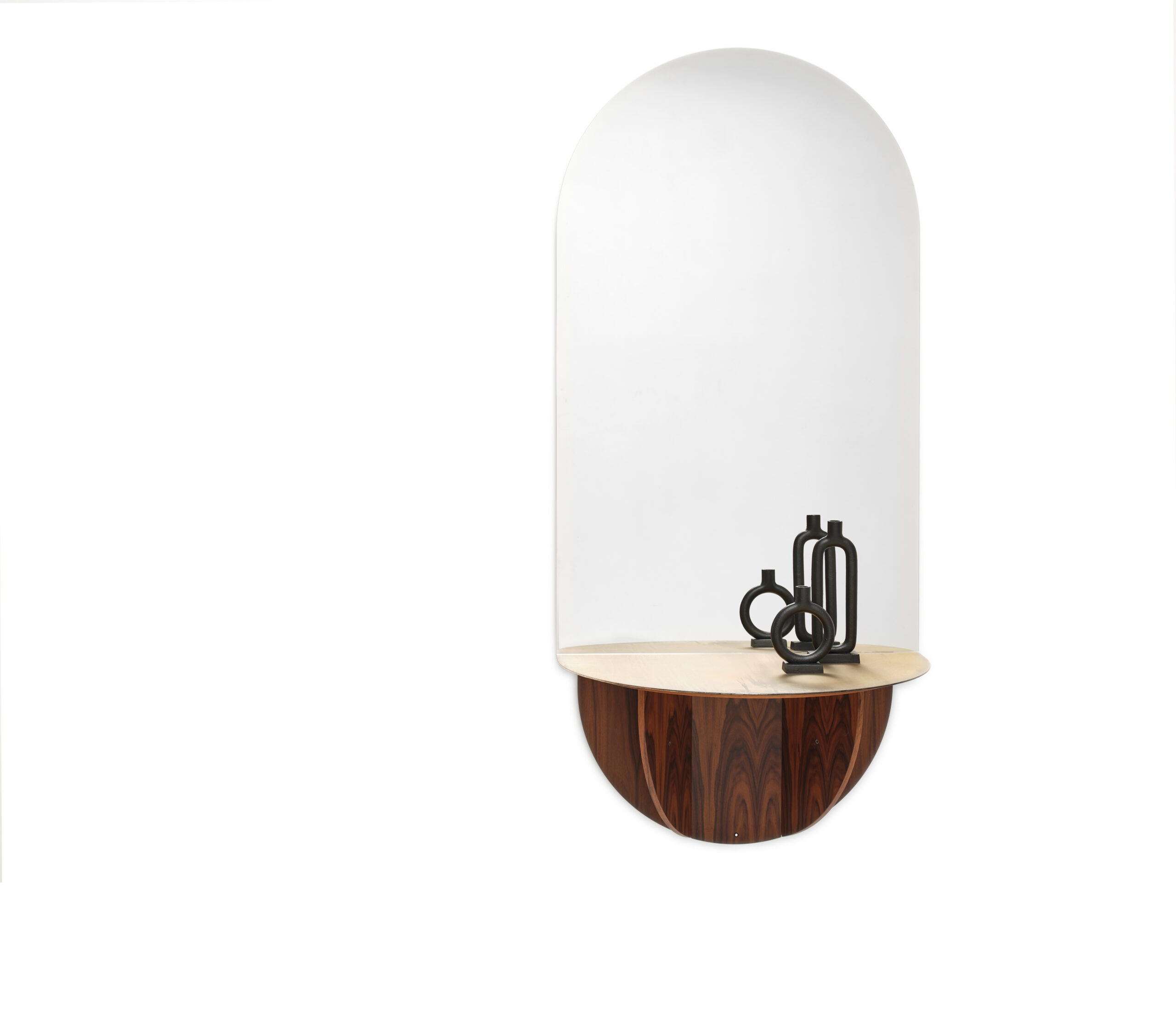 The Mogg Brame mirror is available in a round and oval version, making it a perfect fit for a variety of interiors. What makes this mirror truly special is the fold-away top that is attached to it. This clever design offers additional functionality, making the Brame mirror ideal for use as a make-up table in the bedroom or as a handy storage space in the hallway.