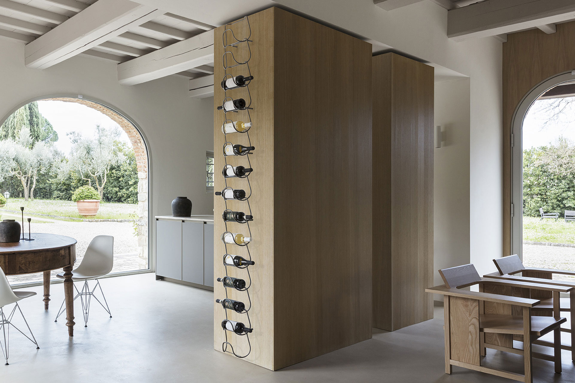 Divina is een metalen flessenhouder die is ontstaan uit één essentieel element dat door de herhaling zowel functionele als esthetische waarde krijgt. Een innovatieve en veelzijdige oplossing, geschikt voor flessen van verschillende vormen en maten, van de meest gangbare tot de minder conventionele.