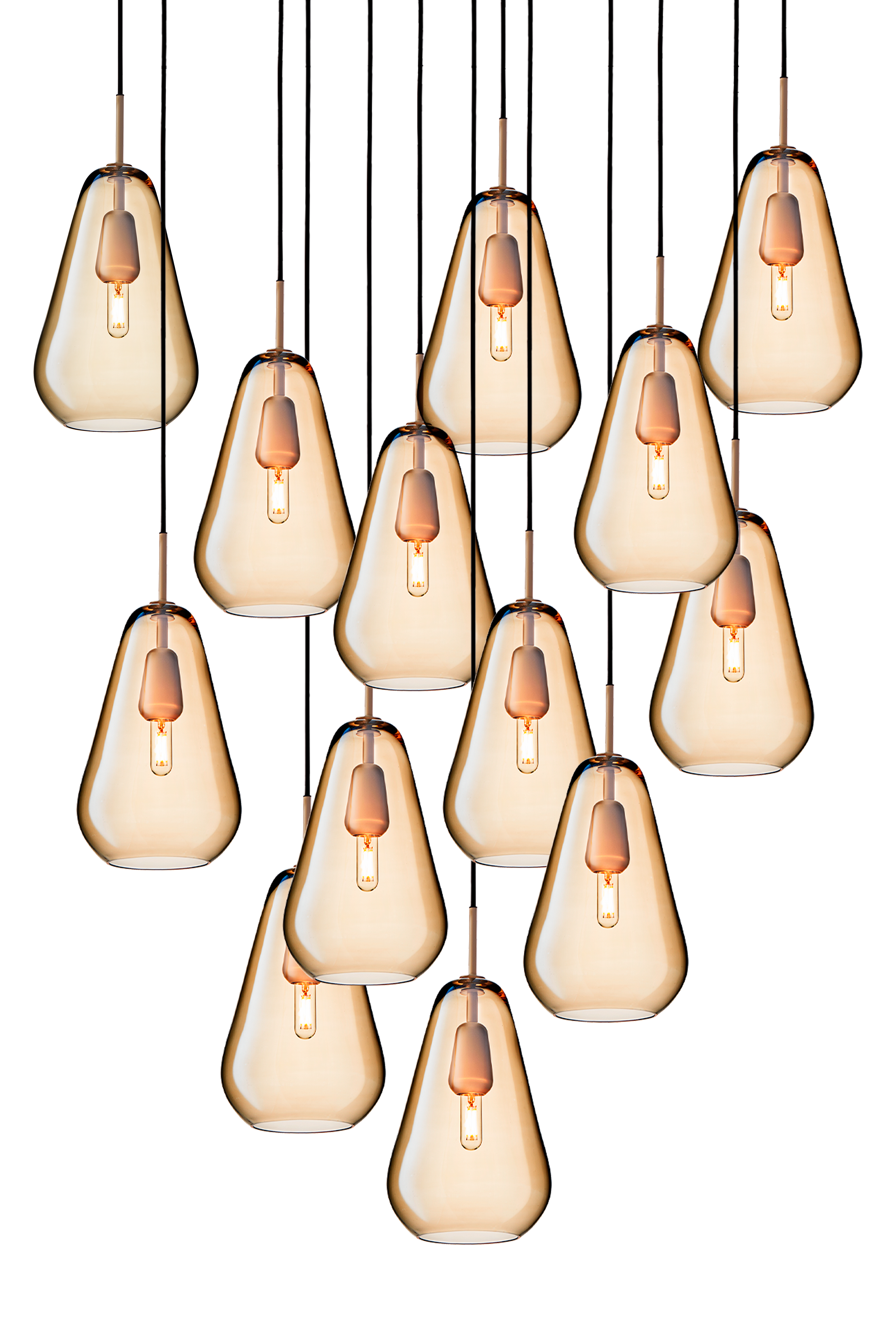 The Anoli collection is made of the highest quality materials and crafted by skilled artisans. The expression is simple and consists of mouth-blown teardrop shaped glass pendants. Bring the unique Scandinavian light inside with Anoli 13. Ceiling plate included.