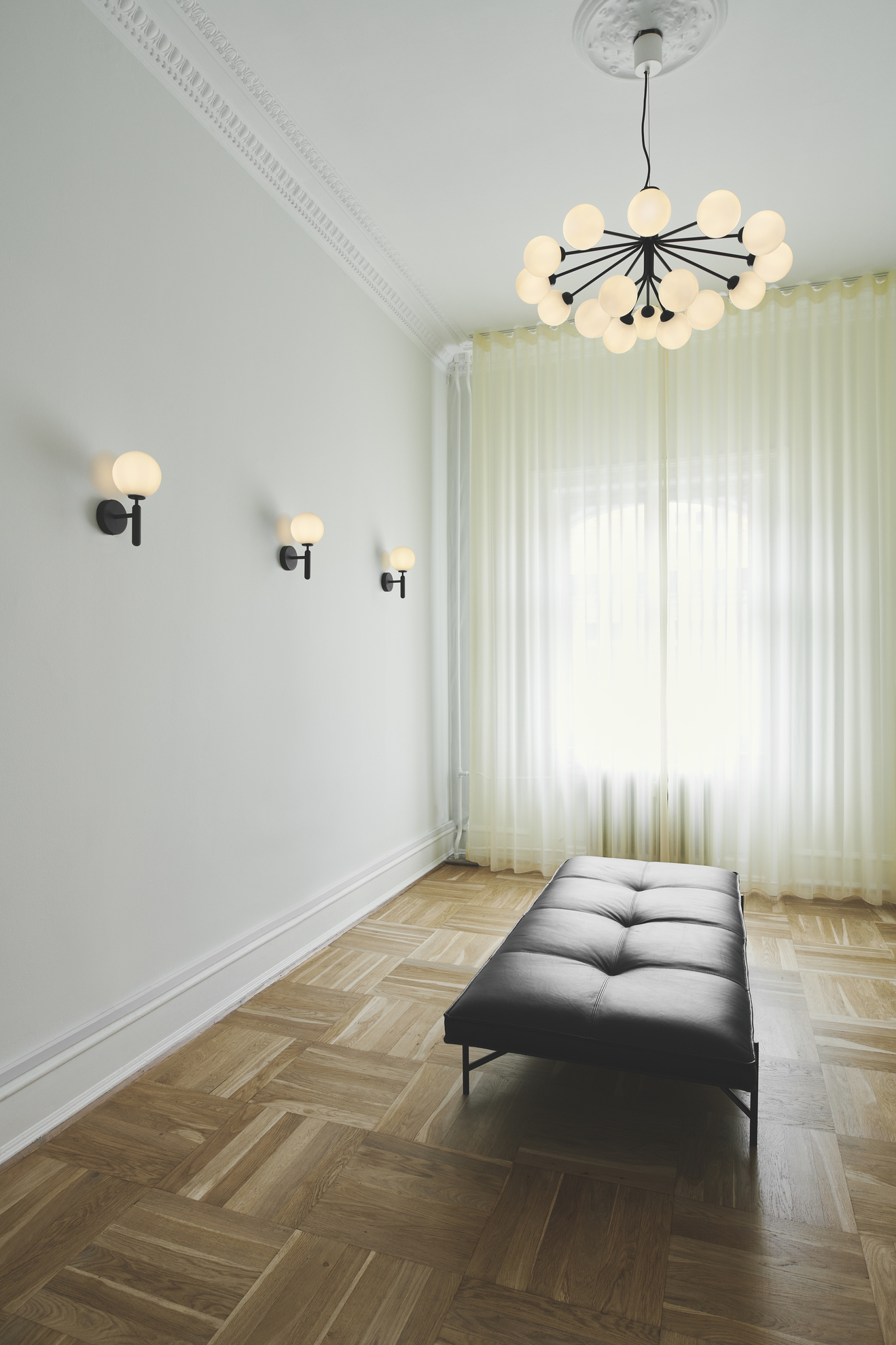 The beautiful Brass color plays beautifully with the graceful design of the Miira collection. The color reflects the light softly and ensures that the fine design curves come forward clearly and sleekly. Soft Scandinavian light shines from the Opal White glass and spreads a unique atmosphere in the room in which the lamp is placed. Including ceiling plate.