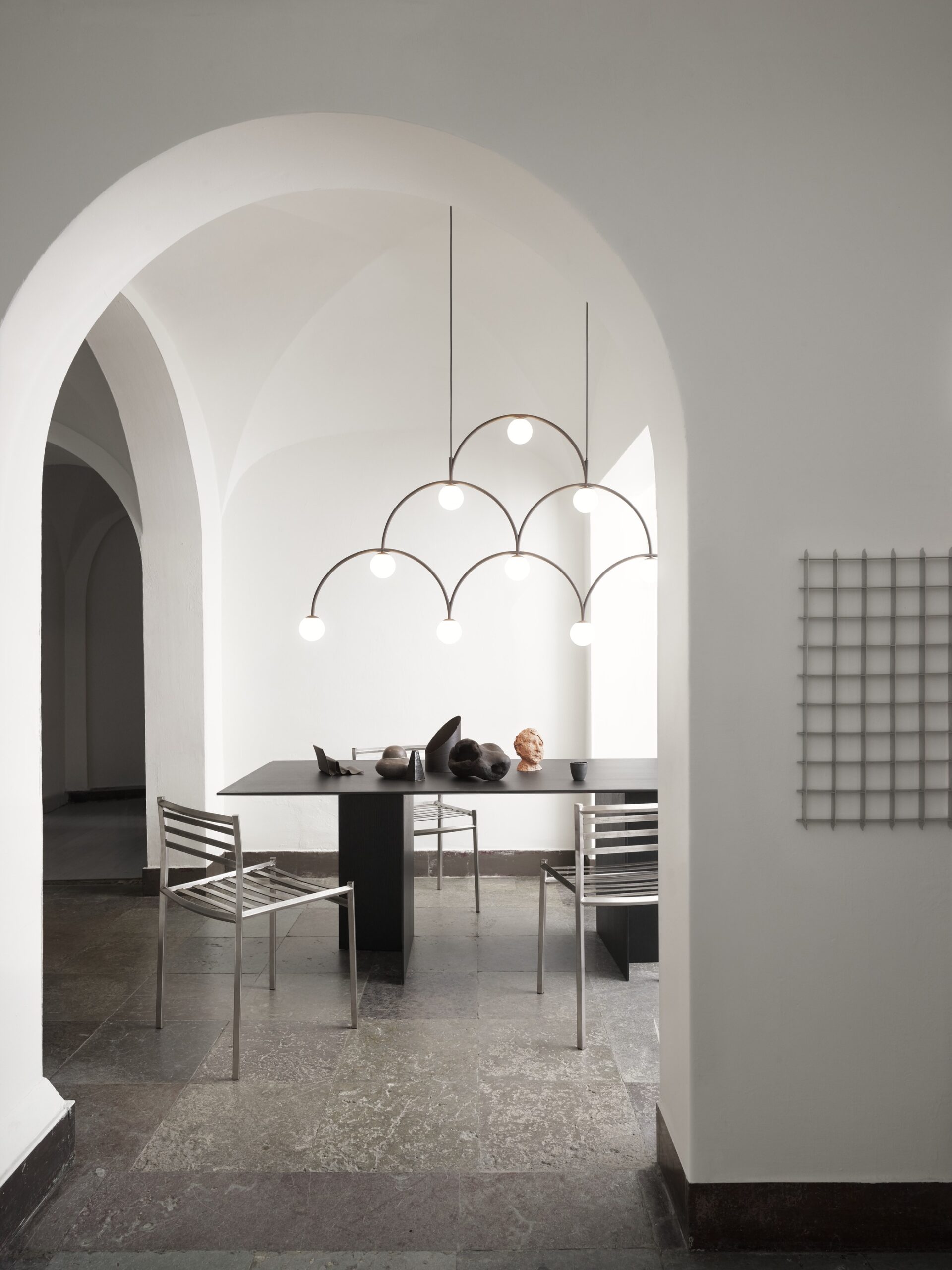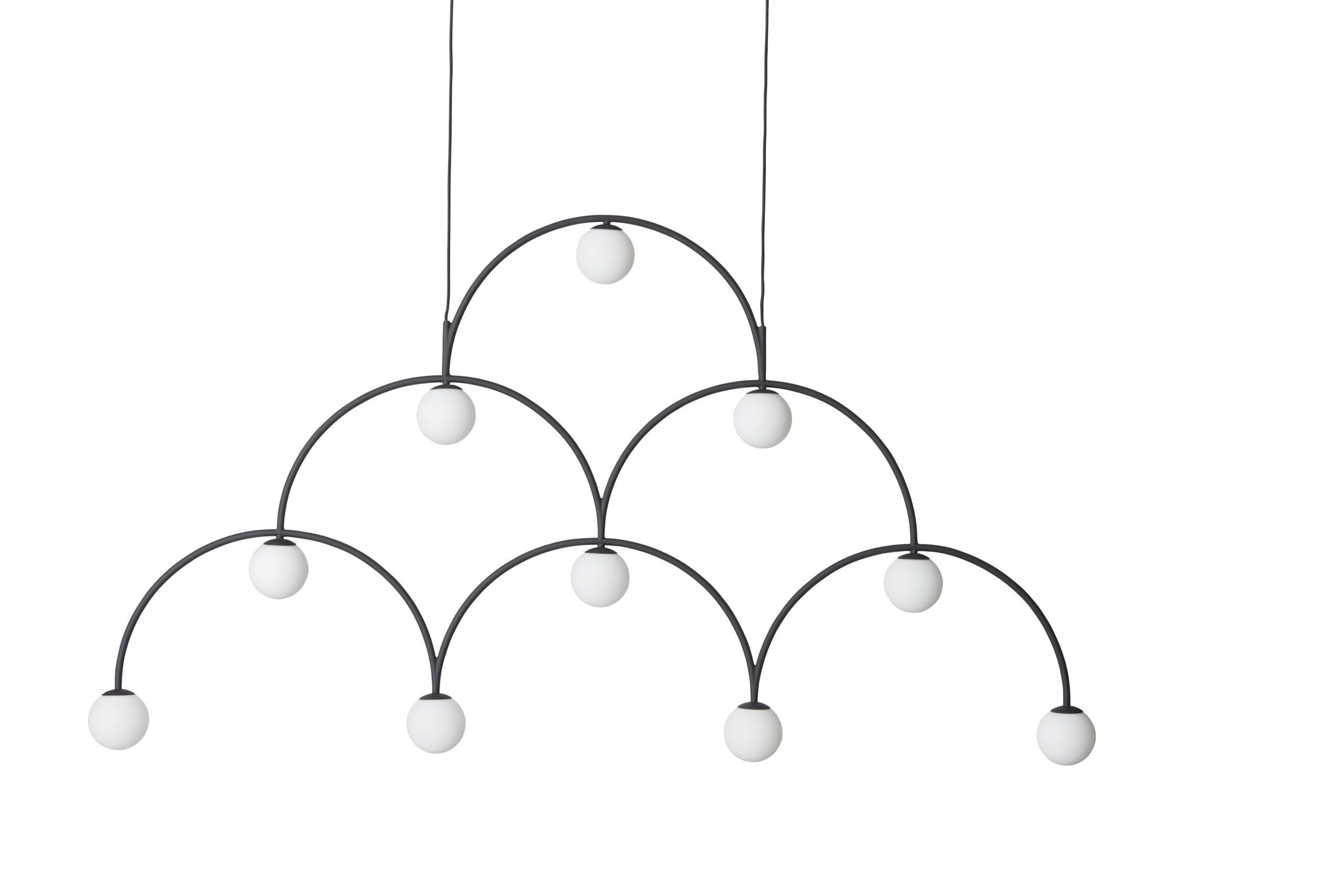 Bounce 169 Pendant catches and seduces the eye with its romantic arches that evoke images of mighty medieval cathedrals without compromising lightness and elegance. The shape is inspired by the path of electric current from top to bottom. Look forward to cozy moments in the soft glow of the beautiful opal glass of the Bounce above the dining table.