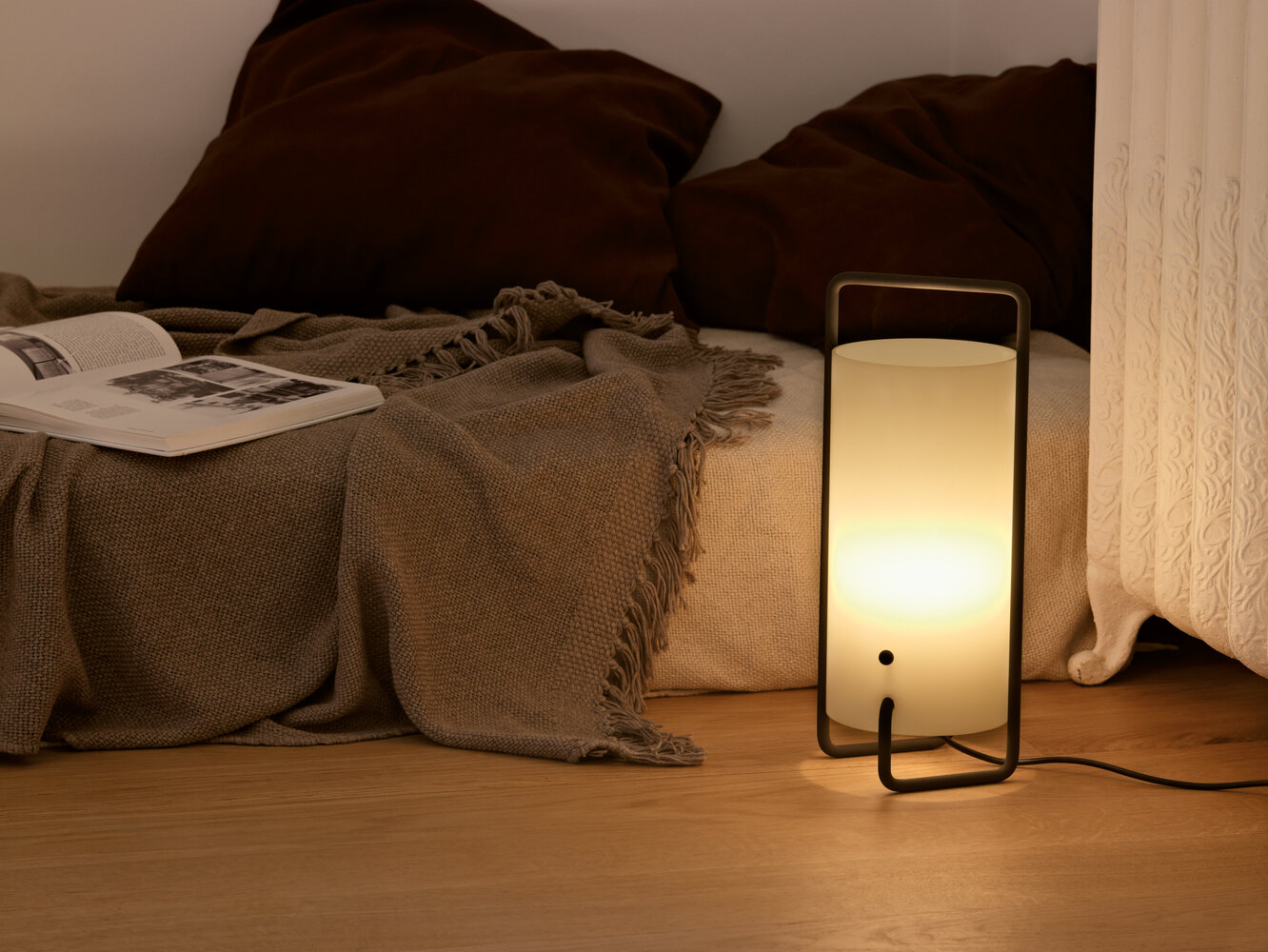 Asa is opgebouwd uit een ingenieuze, enkele, doorlopende buisstructuur die ook de bovenste, handvatvormige structuur voor het dragen definieert. Er zijn twee kleurenversies: wit of, in de originele versie uit 1961, met zwarte structuur en schakelaar. Drie zichtbare elementen, structuur, schaduw en schakelaar, vormen een prachtig geproportioneerd geheel.