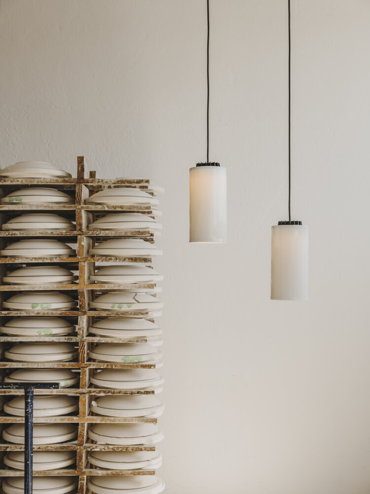 Aan een eenvoudige rozet hangt een capsule met daarin een LED-lichtbron. Drie verschillende tinten variëren van het vervaardigde porselein van Sargadelos (Galicië, Spanje), geschikt voor de meest bewonderenswaardige verlichting, tot doorschijnend opaalglas voor sterkere en zuinigere verlichting, en de ondoorzichtige elegantie van messing voor spotverlichting.